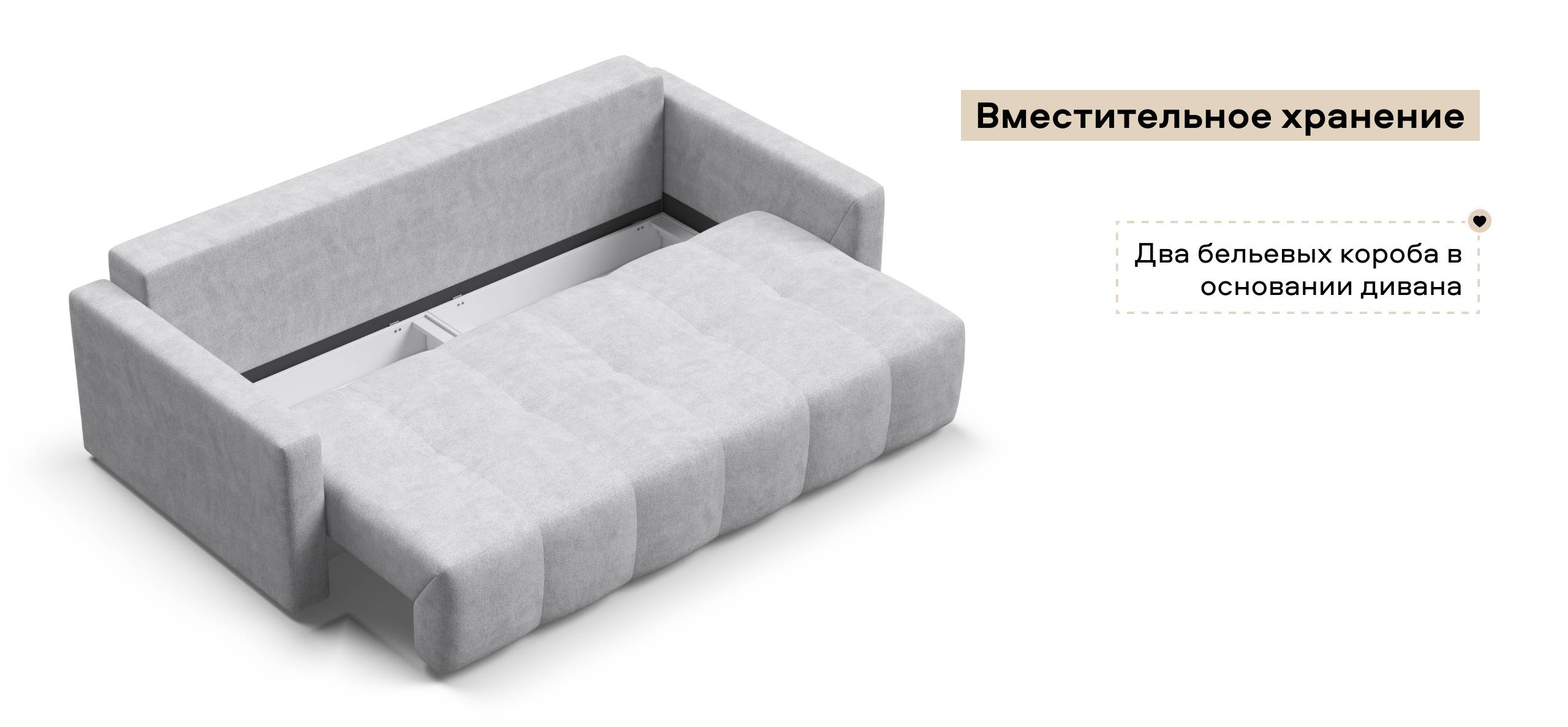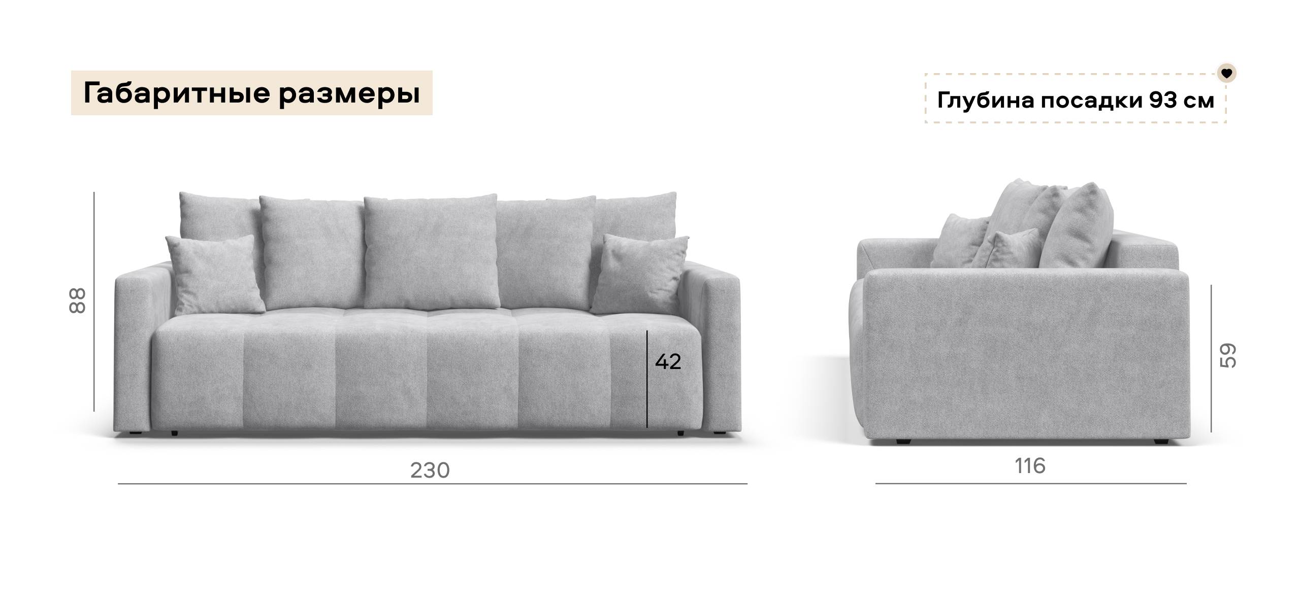 Сиденье Босс Дейбед глубиной 92 см идеально подходит для сна одного человека, даже без раскладывания дивана. Независимый пружинный блок в основании и механизм "еврокнижка" превращают диван в комфортное спальное место с анатомическим эффектом.