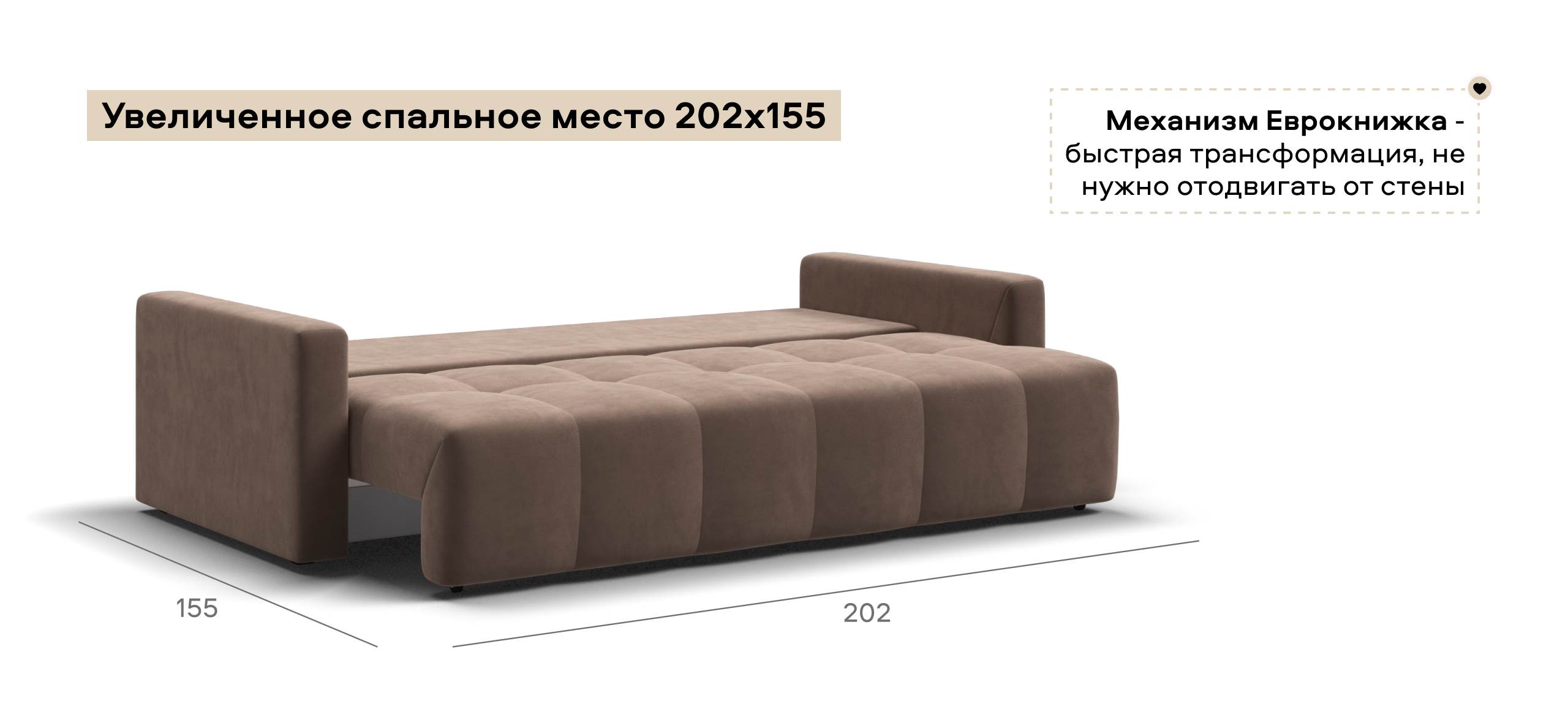 Сиденье Босс Дейбед глубиной 92 см идеально подходит для сна одного человека, даже без раскладывания дивана. Независимый пружинный блок в основании и механизм "еврокнижка" превращают диван в комфортное спальное место с анатомическим эффектом.