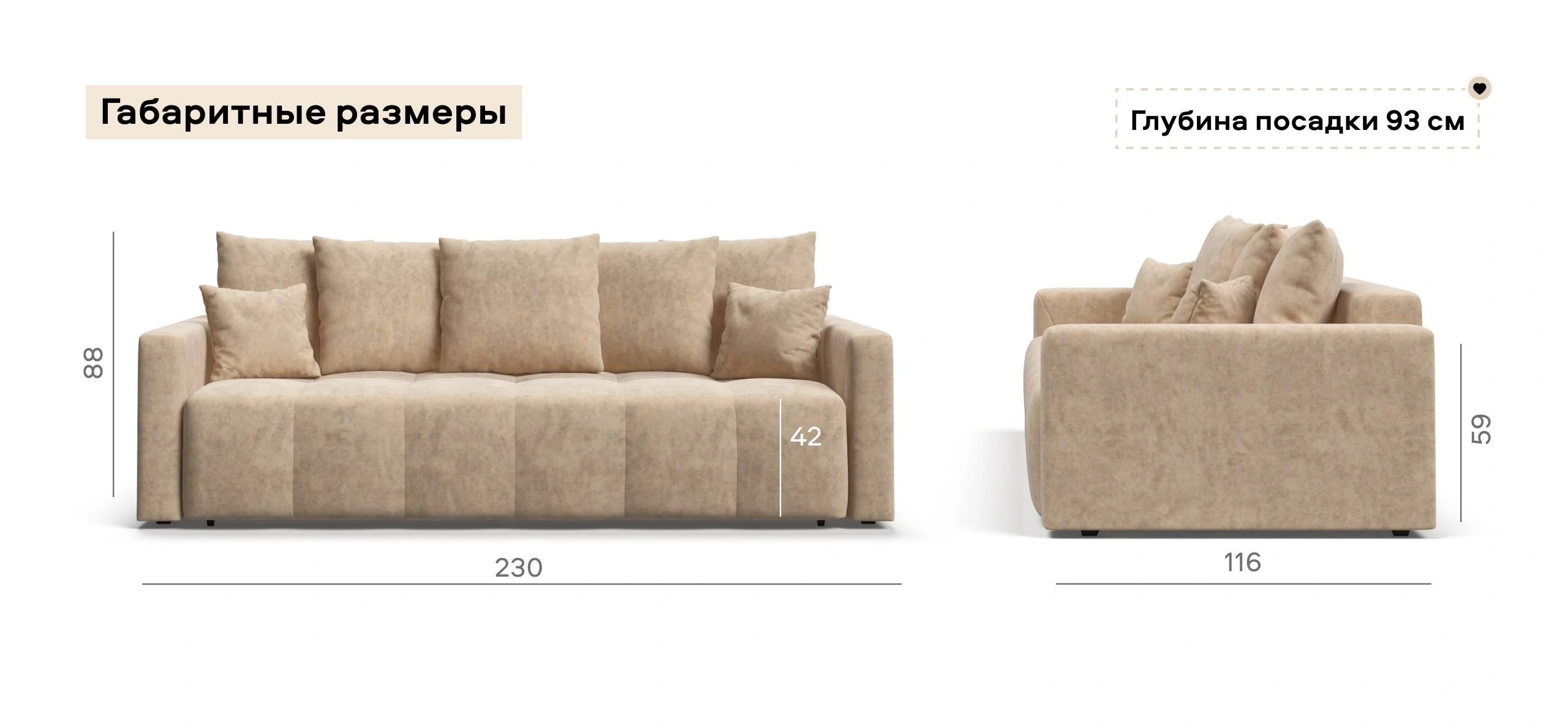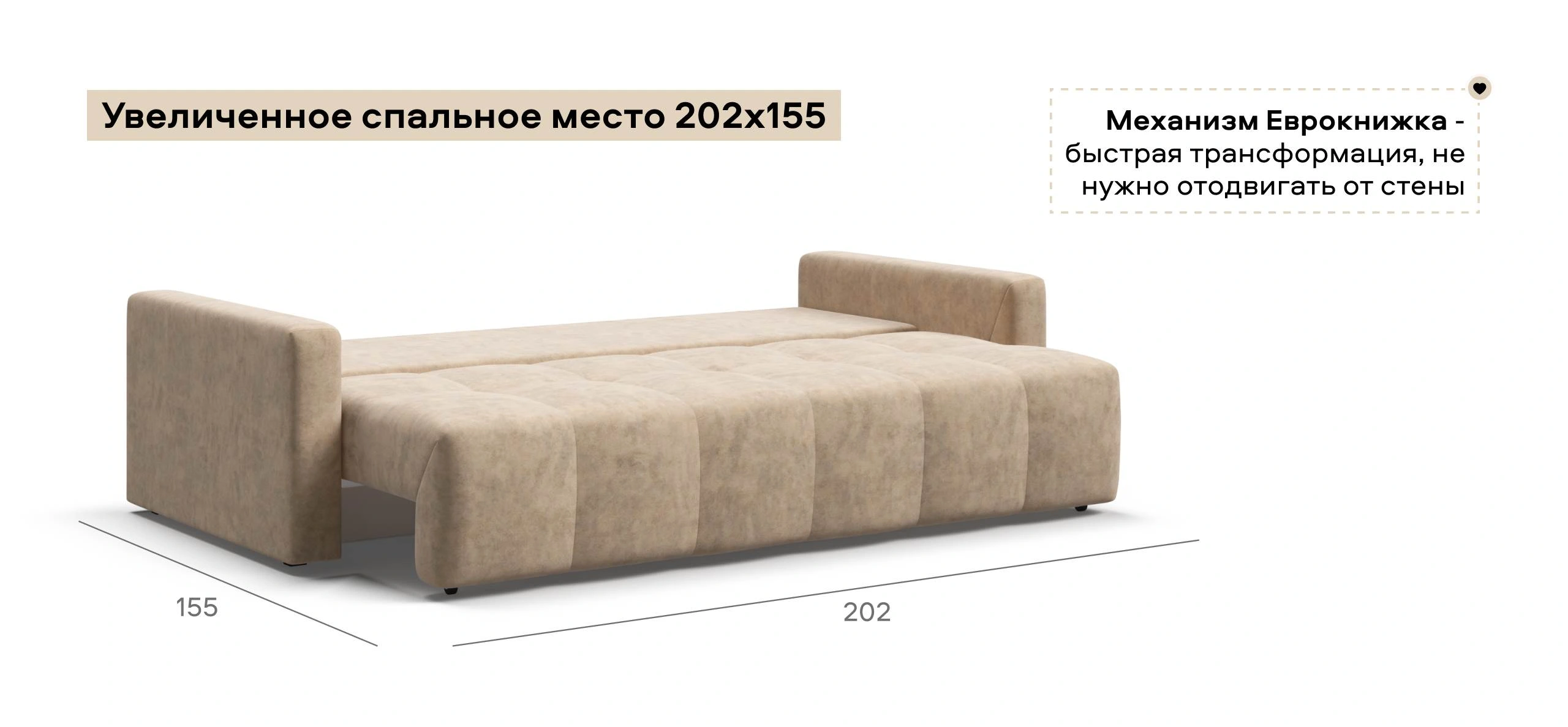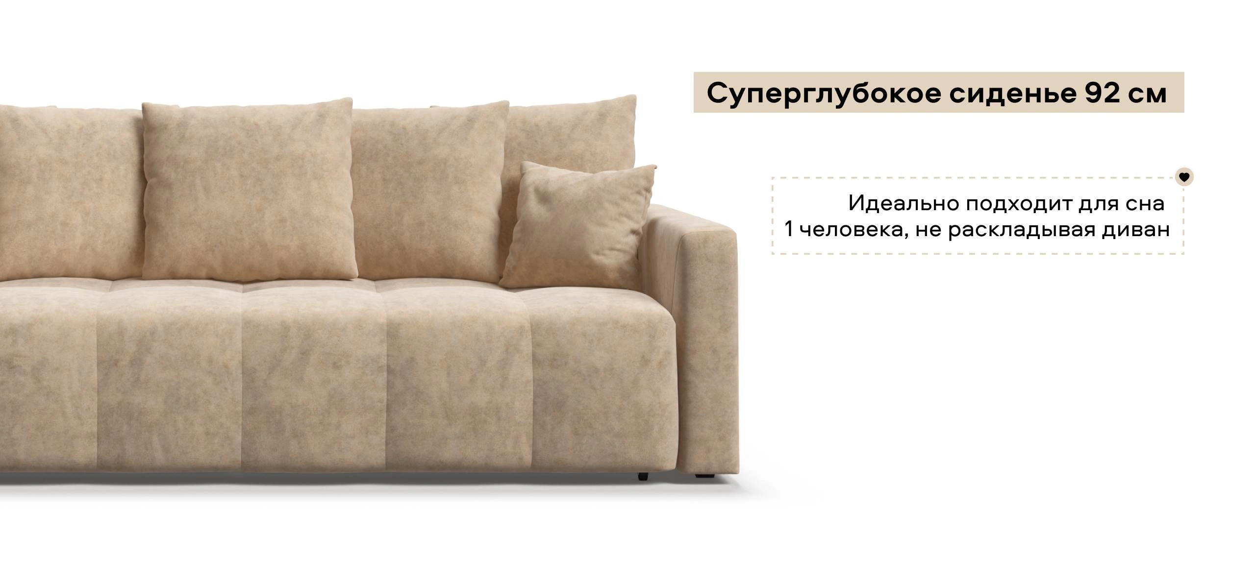 Сиденье Босс Дейбед глубиной 92 см идеально подходит для сна одного человека, даже без раскладывания дивана. Независимый пружинный блок в основании и механизм "еврокнижка" превращают диван в комфортное спальное место с анатомическим эффектом.