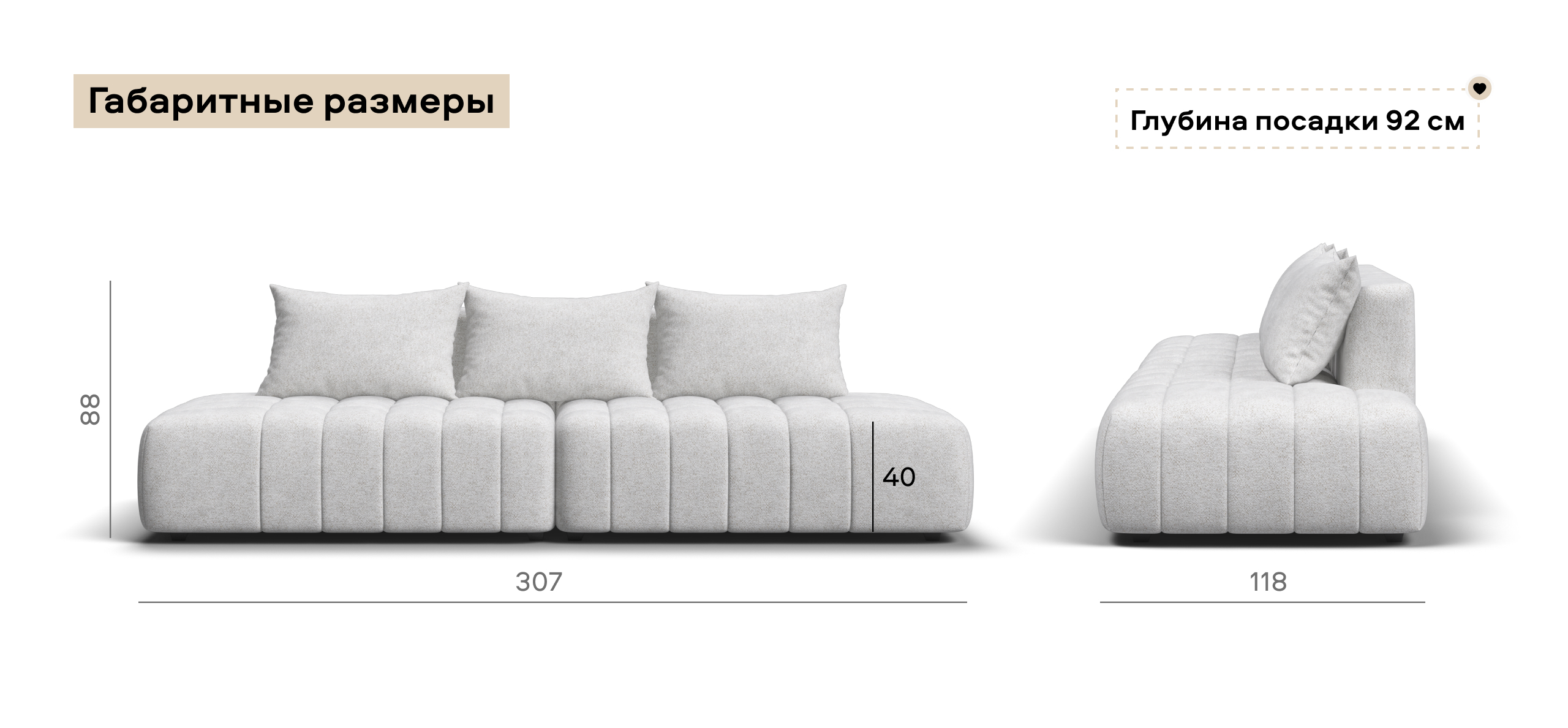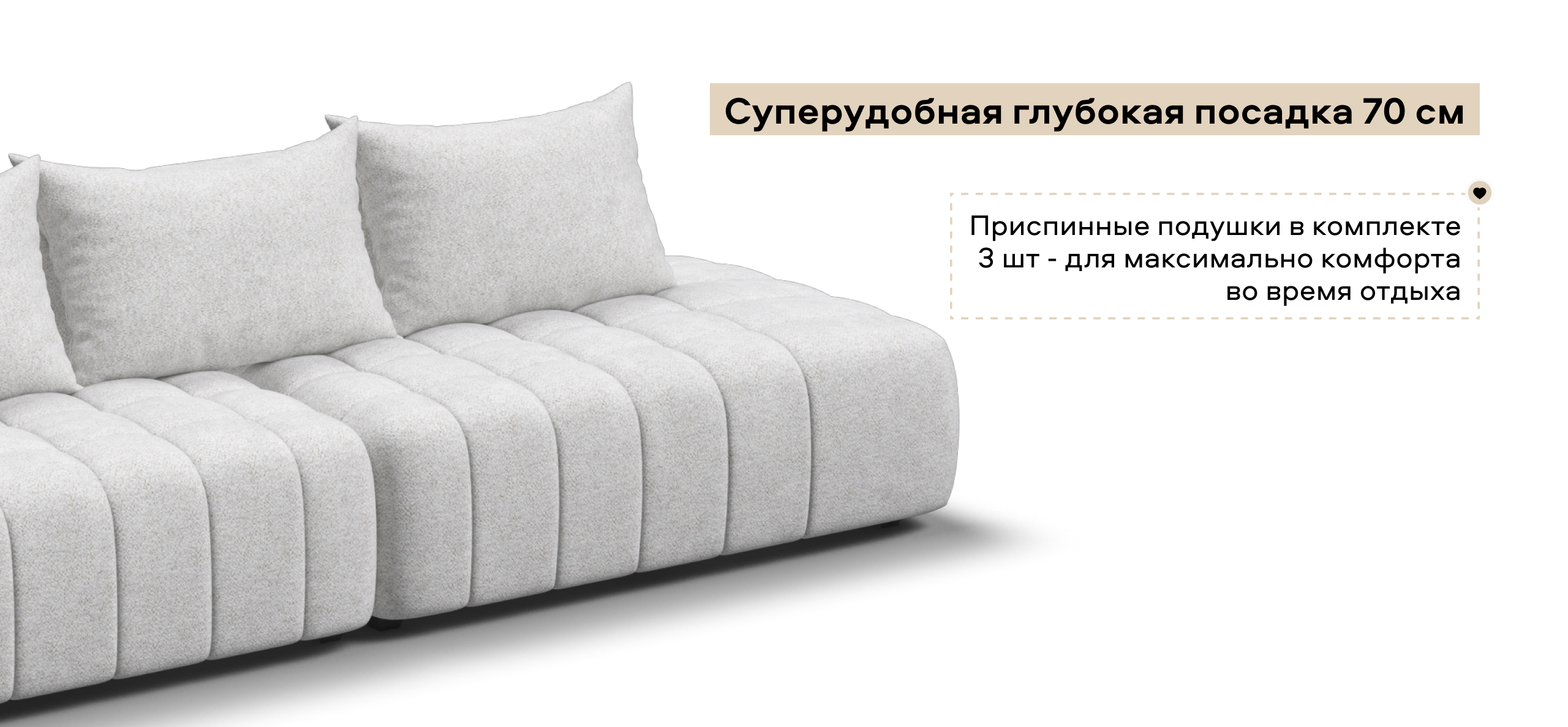 Глубокое сиденье и независимые пружины в основании словно созданы для полного расслабления, а мягкие спинки обеспечивают комфорт без лишних подушек.
