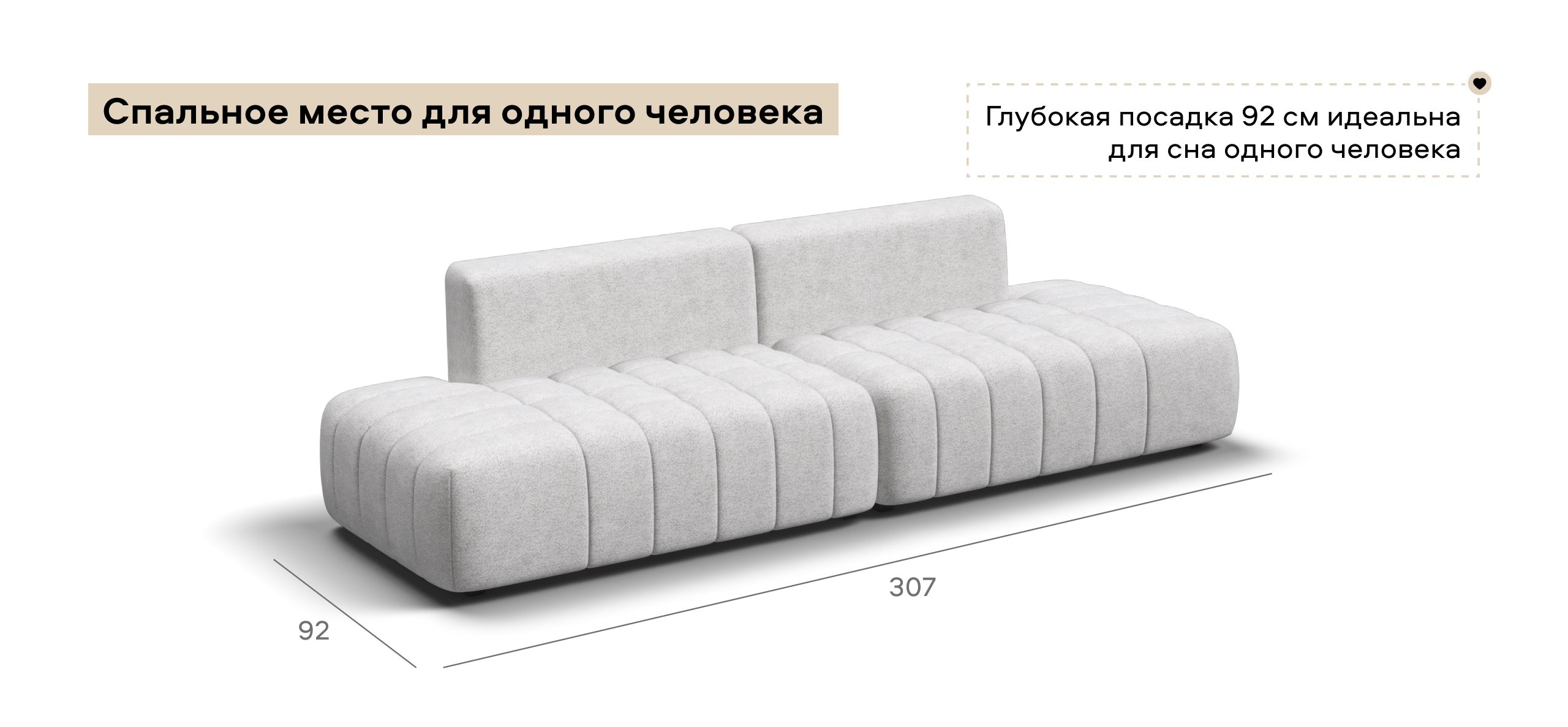 Благодаря инновационной системе креплений и быстросъёмным элементам Вы с лёгкостью можете поменять конфигурацию и адаптировать диван под новое пространство.
