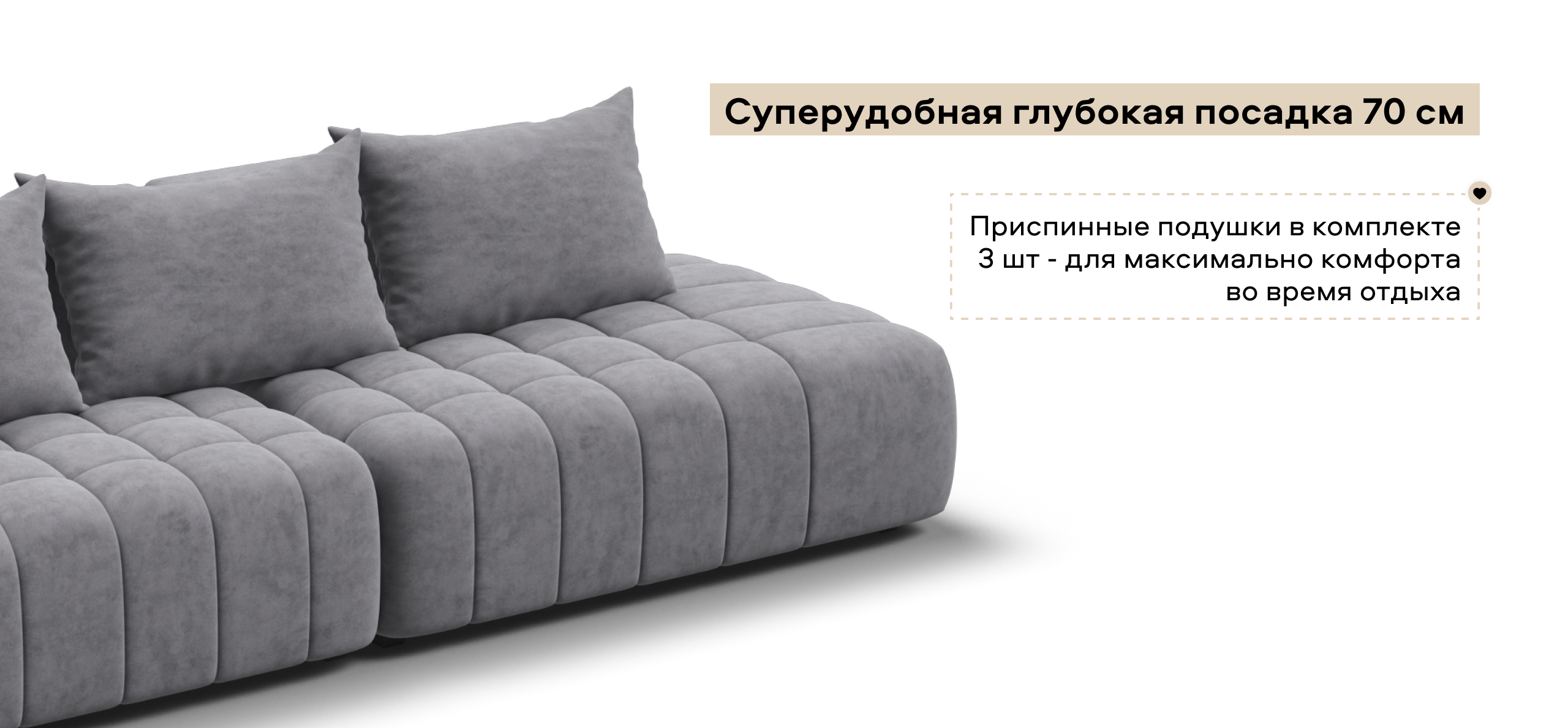 Глубокое сиденье и независимые пружины в основании словно созданы для полного расслабления, а мягкие спинки обеспечивают комфорт без лишних подушек.