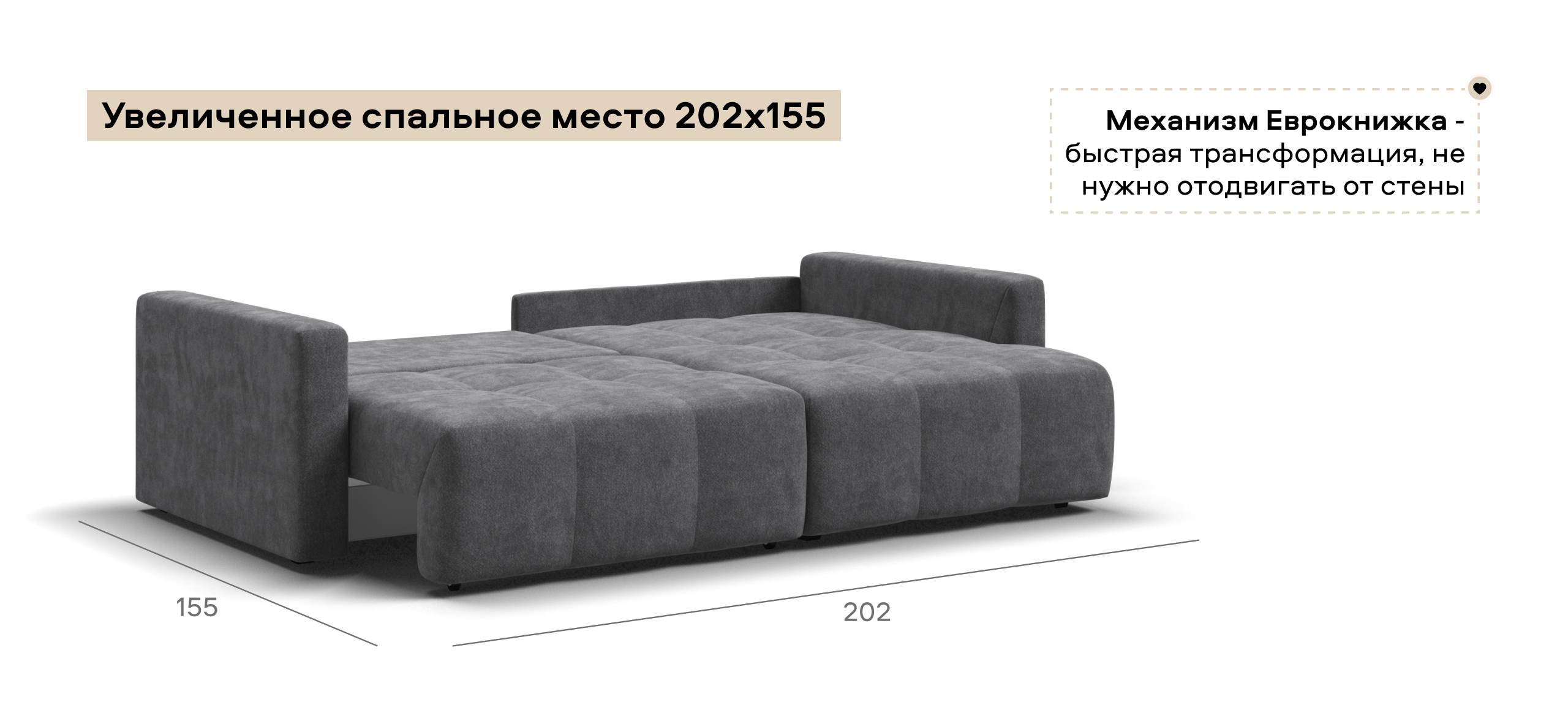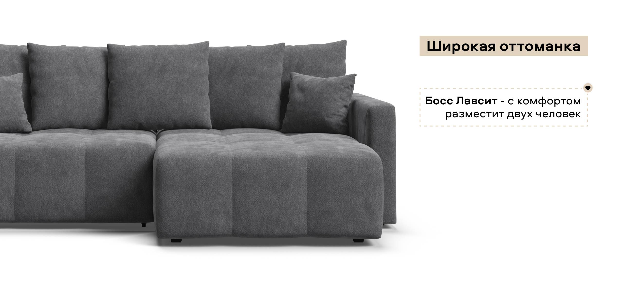 Широкая оттоманка Босс Лавсит - с комфортом разместит двух человек. Независимый пружинный блок в основании и механизм еврокнижка превращают диван в комфортное спальное место с анатомическим эффектом.