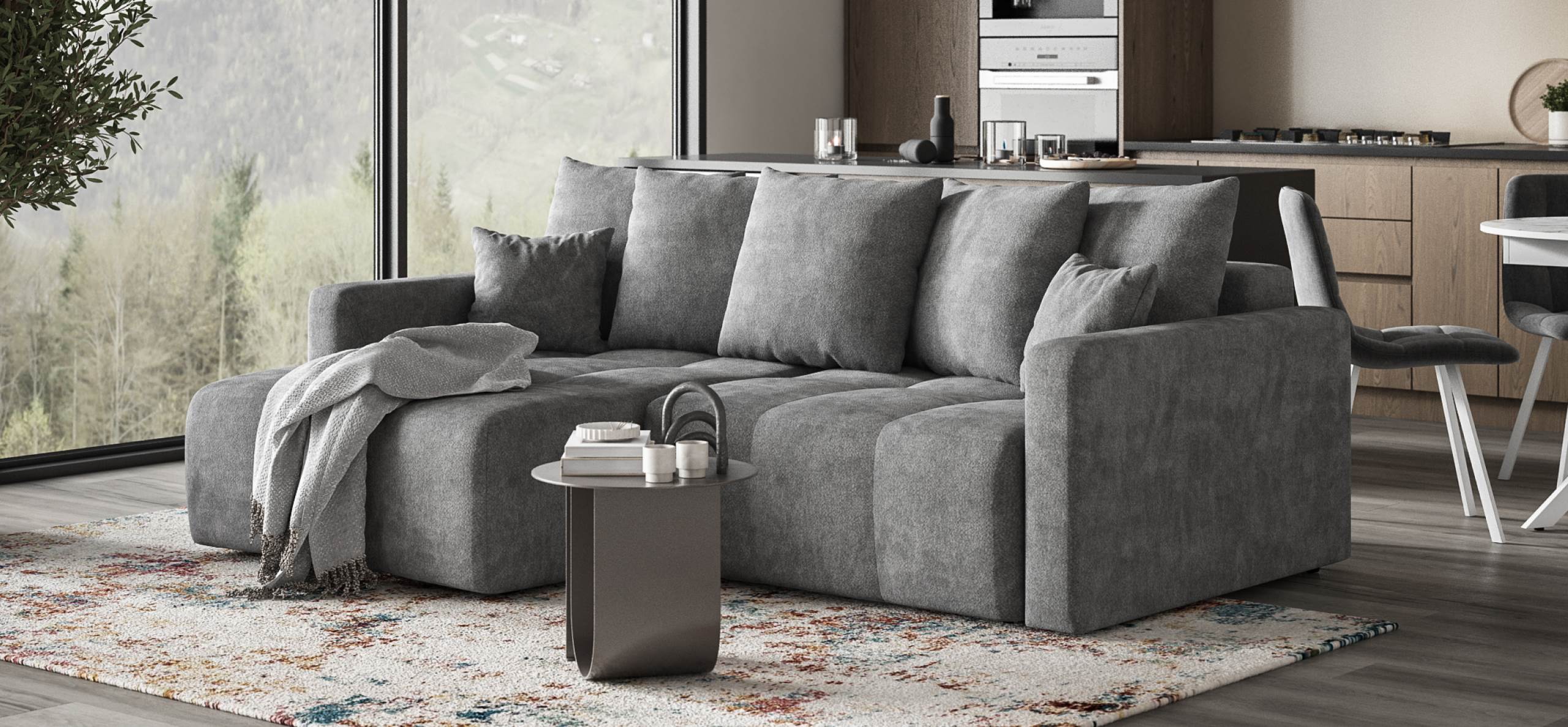 Угловой диван Босс Тренд Шенилл Клауд графит