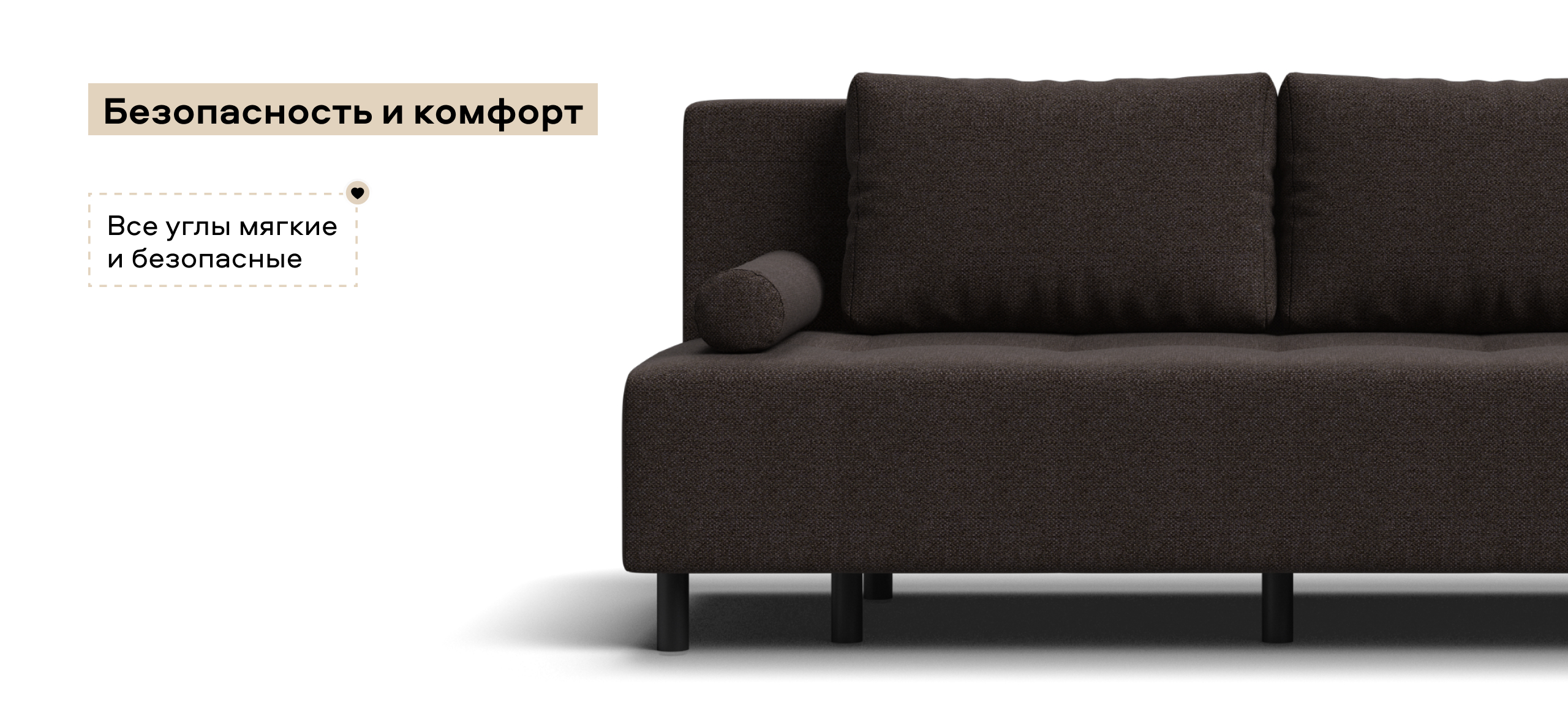 Высокие ножки из высокопрочной стали обеспечивают надежный каркас и под диван свободно заезжает робот-пылесос. Бостон Мини — ваш умный выбор для современных квартир, студий и уютных гостиных.