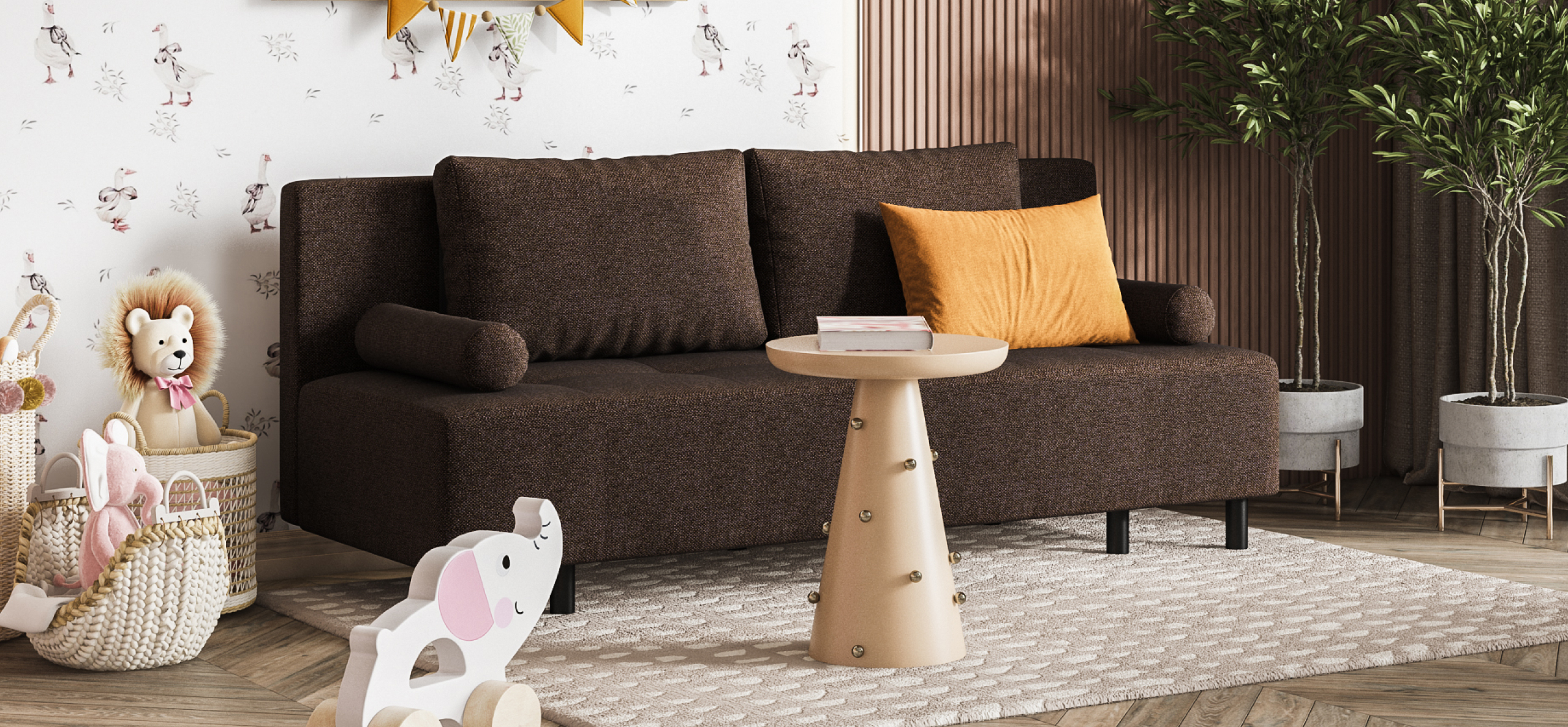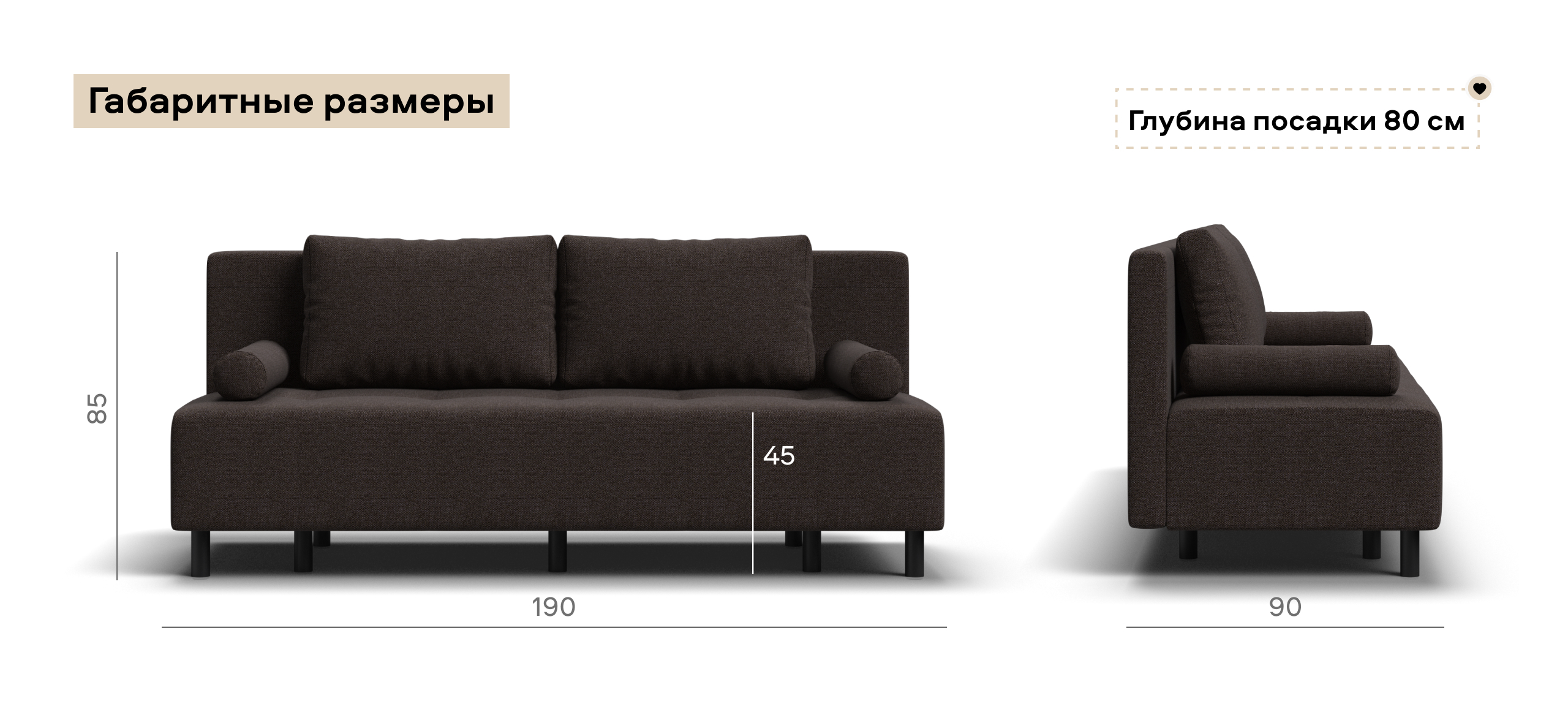 Модель оснащена надёжным механизмом трансформации еврокнижка, который за пару движений превращает диван в полноценное спальное место. Дополнительные декоративные подушки в комплекте добавляют мягкости и завершают образ.
