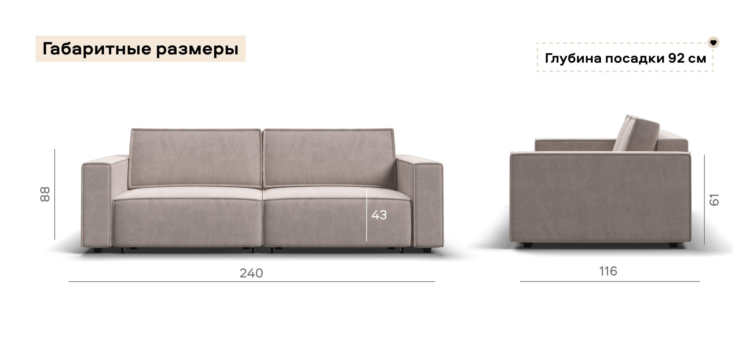 Широкие прямоугольные подлокотники, строгая симметрия и минималистичная отделка идеально дополнит современный интерьер Вашей гостиной.