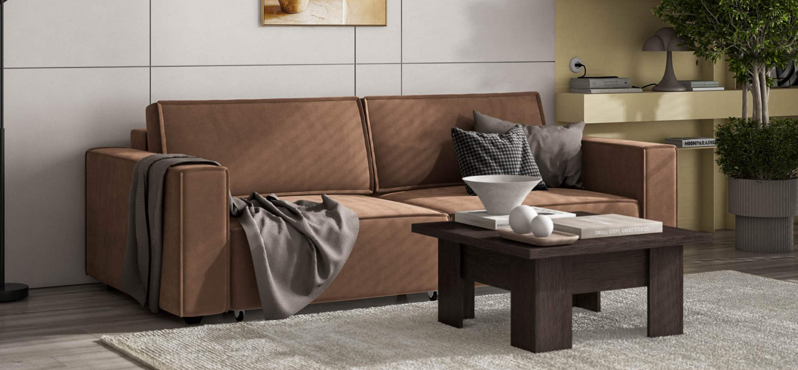 Простой и надежный механизм еврокнижка с легкостью превратит модульную систему в комфортное спальное место.