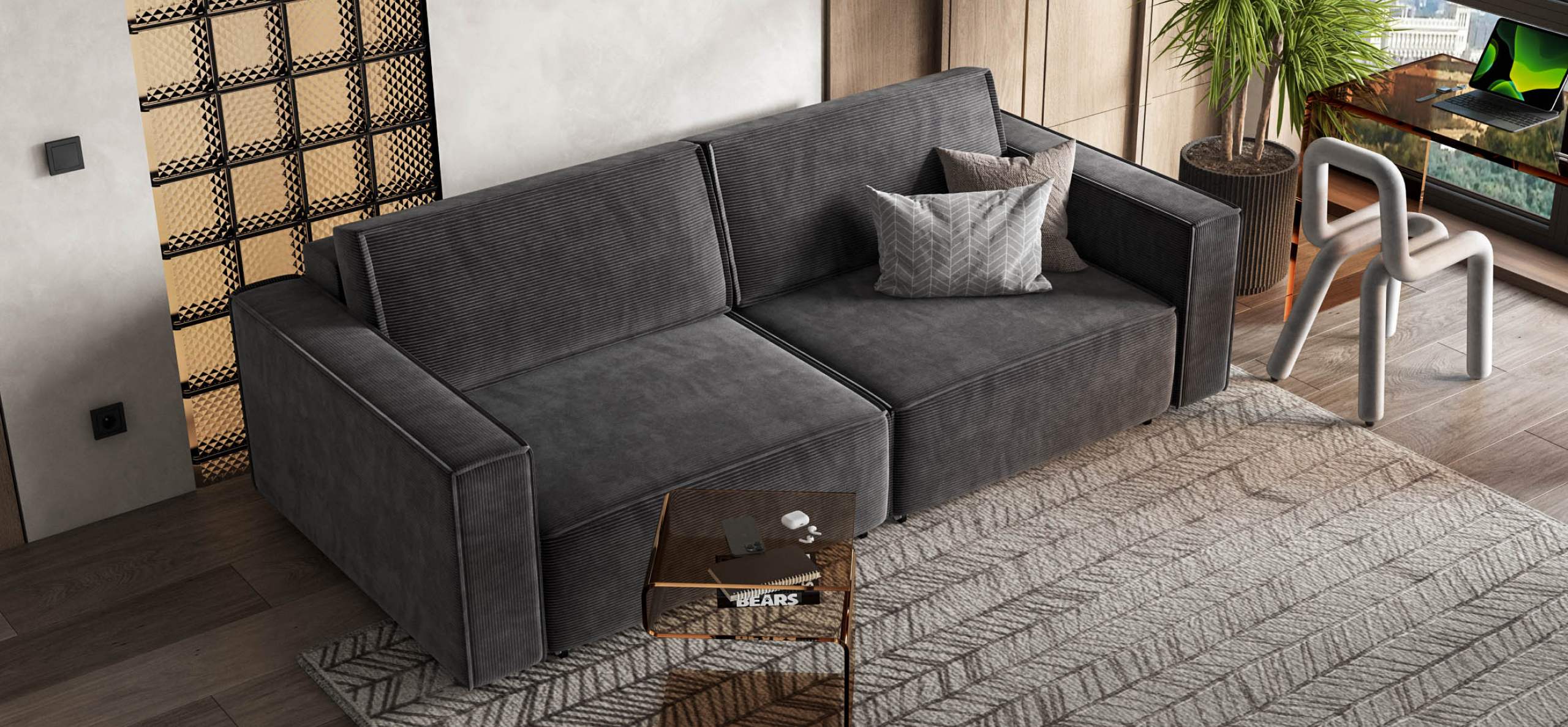 Диван Босс Софт – Модульная система в стиле лофт. Сочетание надежности, стиля и функциональности. Супер удобная глубокая посадка и высокоэластичная пена с дополнительным слоем Периотек создадут максимальный комфорт во время отдыха.