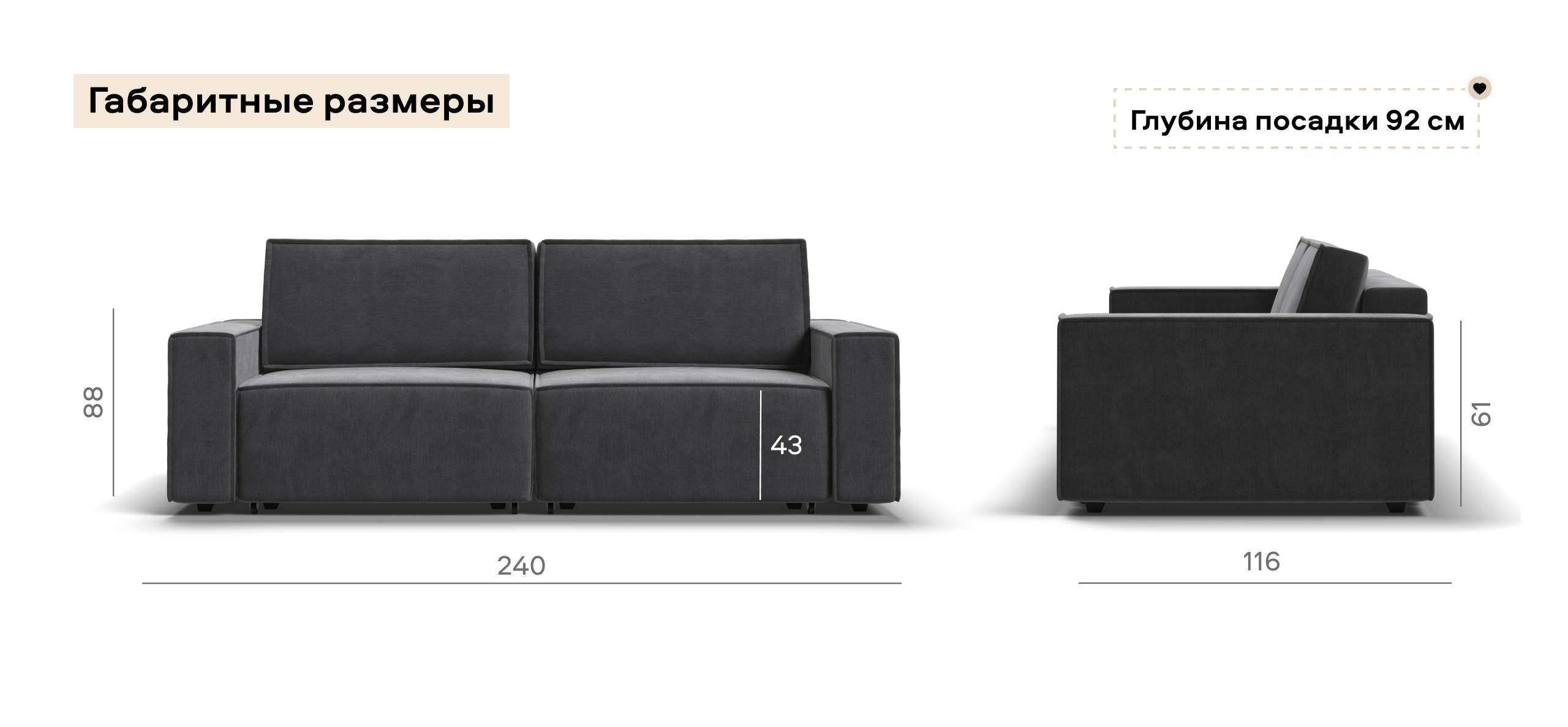 Широкие прямоугольные подлокотники, строгая симметрия и минималистичная отделка идеально дополнит современный интерьер Вашей гостиной.