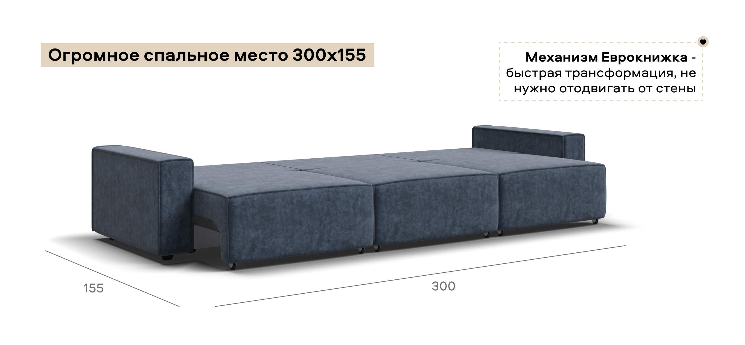 Простой и надежный механизм еврокнижка с легкостью превратит модульную систему в комфортное спальное место.