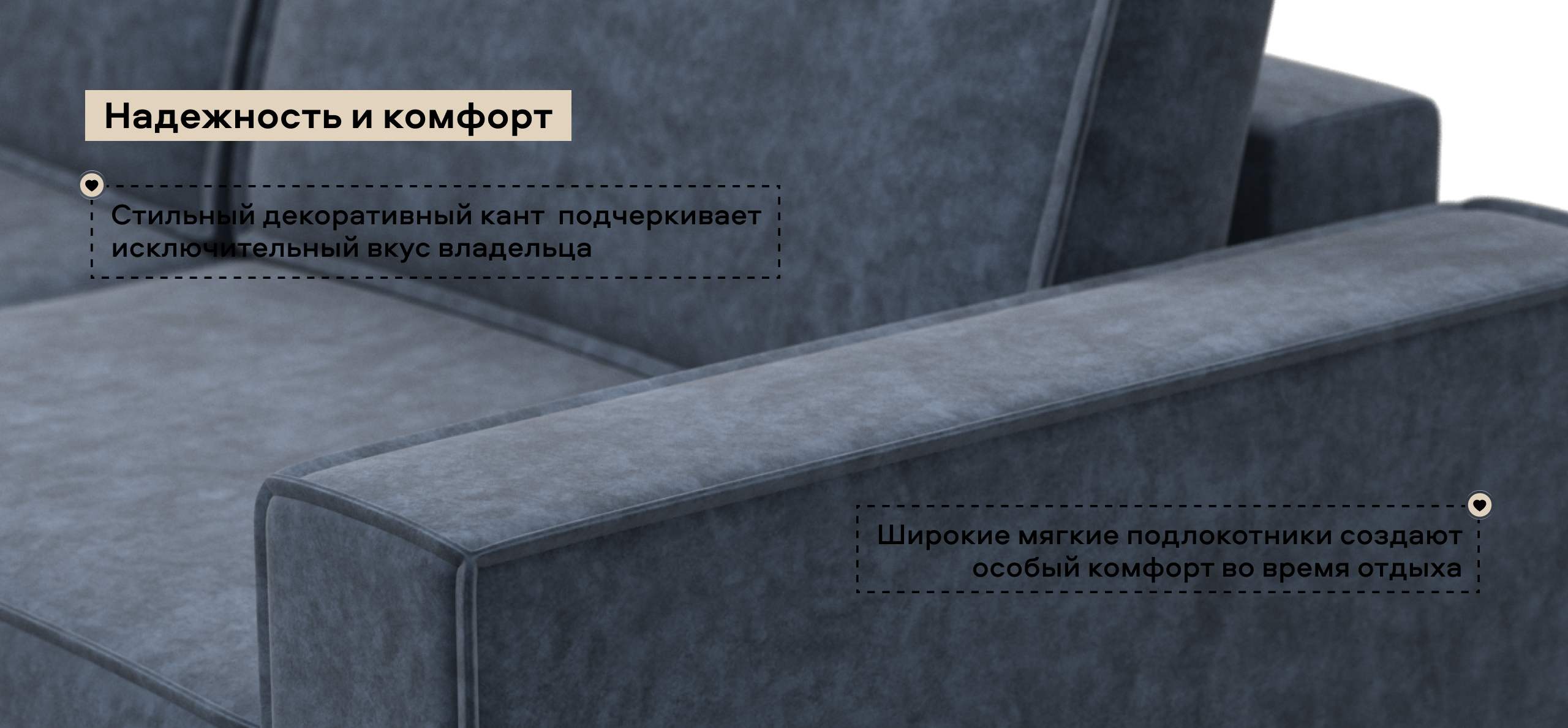 Широкие прямоугольные подлокотники, строгая симметрия и минималистичная отделка идеально дополнит современный интерьер Вашей гостиной.