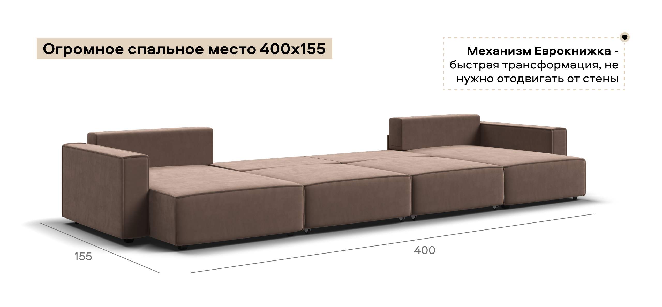 Простой и надежный механизм еврокнижка с легкостью превратит модульную систему в комфортное спальное место.