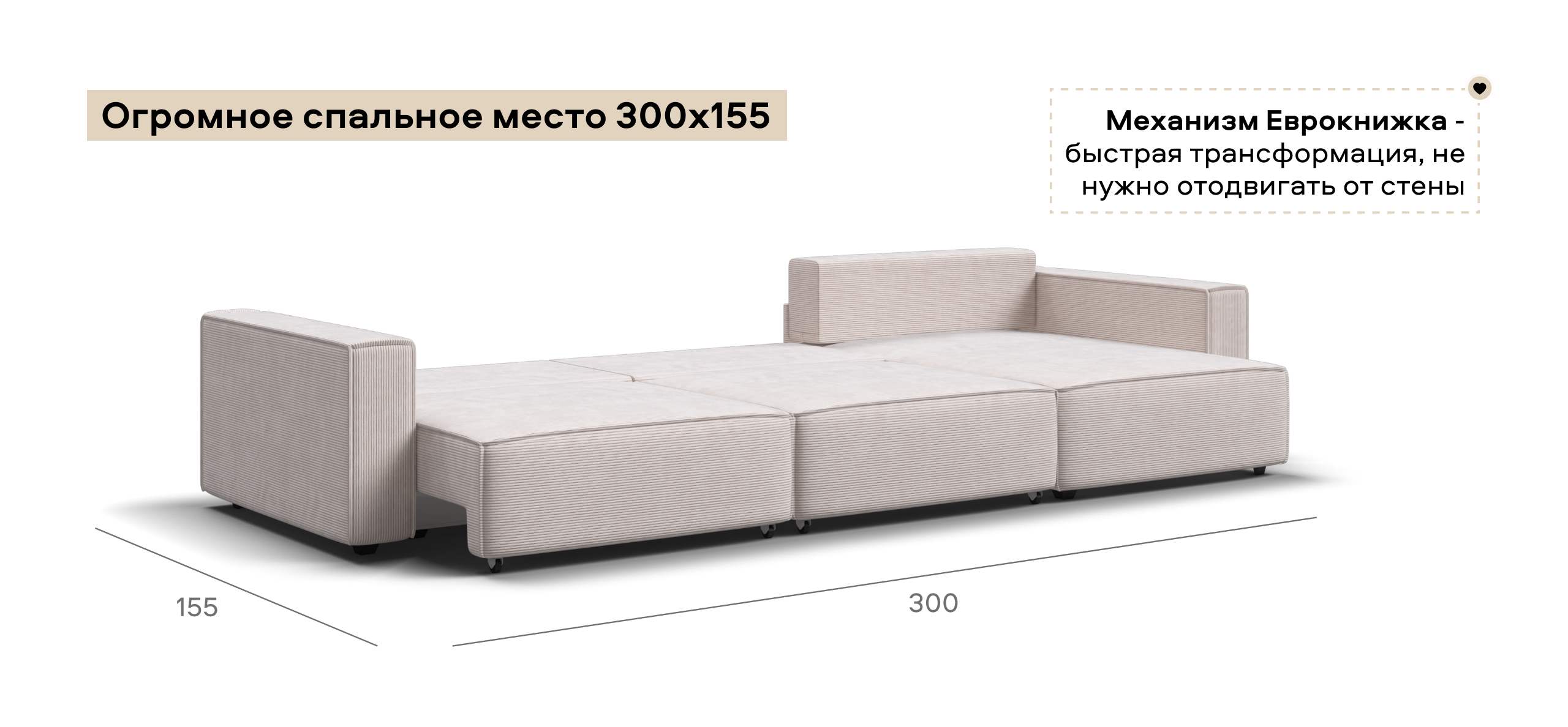 Простой и надежный механизм еврокнижка с легкостью превратит модульную систему в комфортное спальное место.