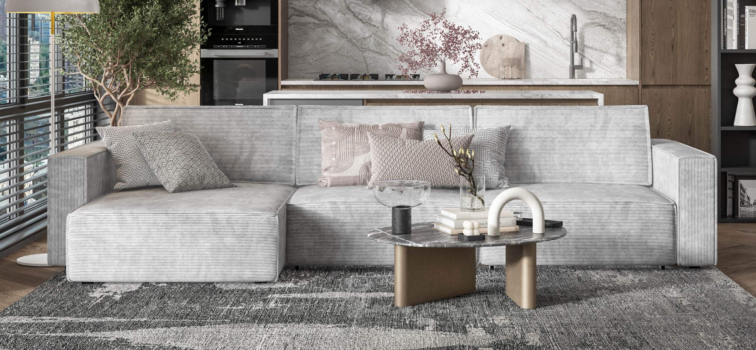 Простой и надежный механизм еврокнижка с легкостью превратит модульную систему в комфортное спальное место.