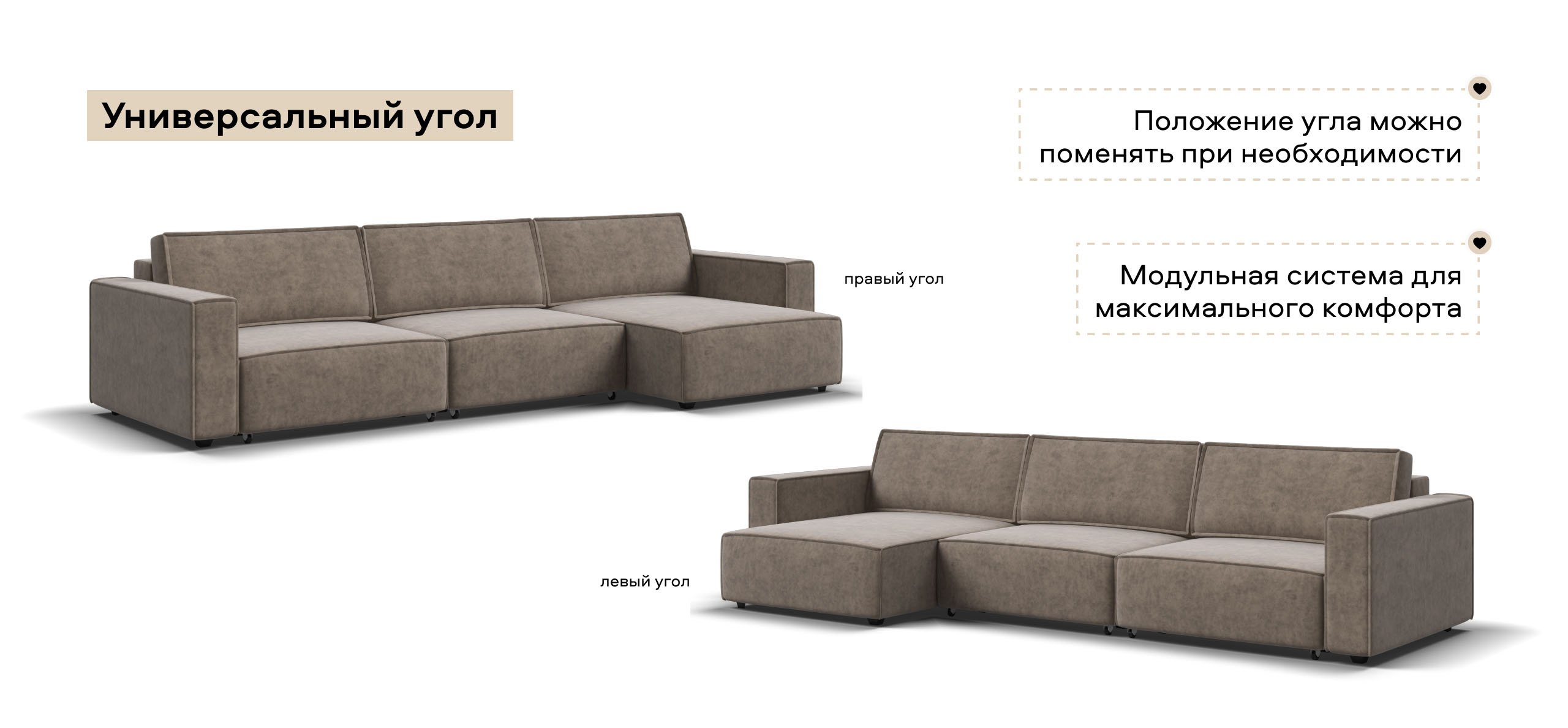 Угловой диван Босс Софт Модуль Макс велюр Роял тауп