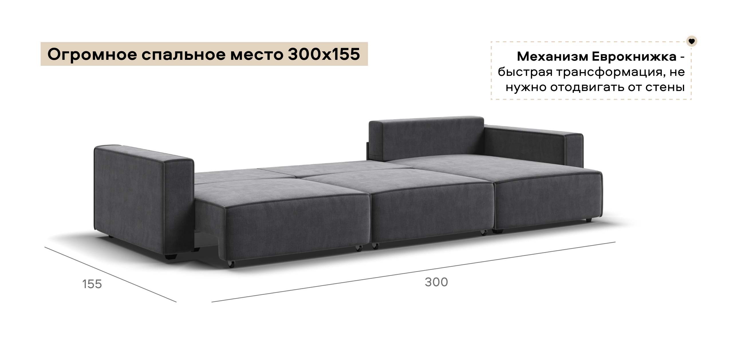 Простой и надежный механизм еврокнижка с легкостью превратит модульную систему в комфортное спальное место.