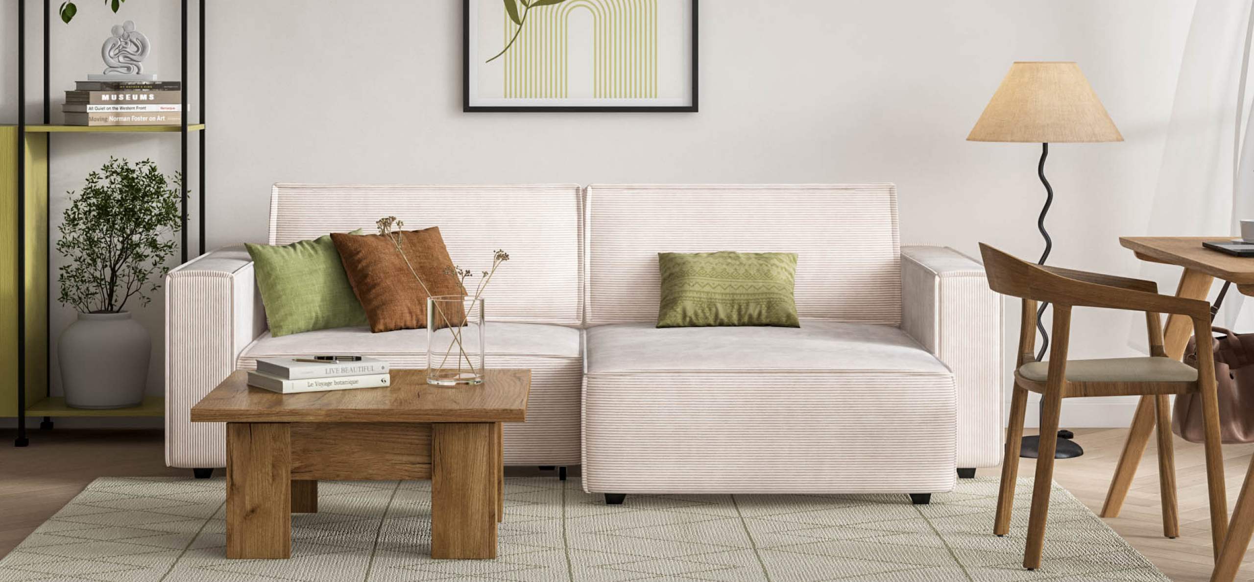 Угловой диван Босс Софт Модуль Вельвет Корд бежевый