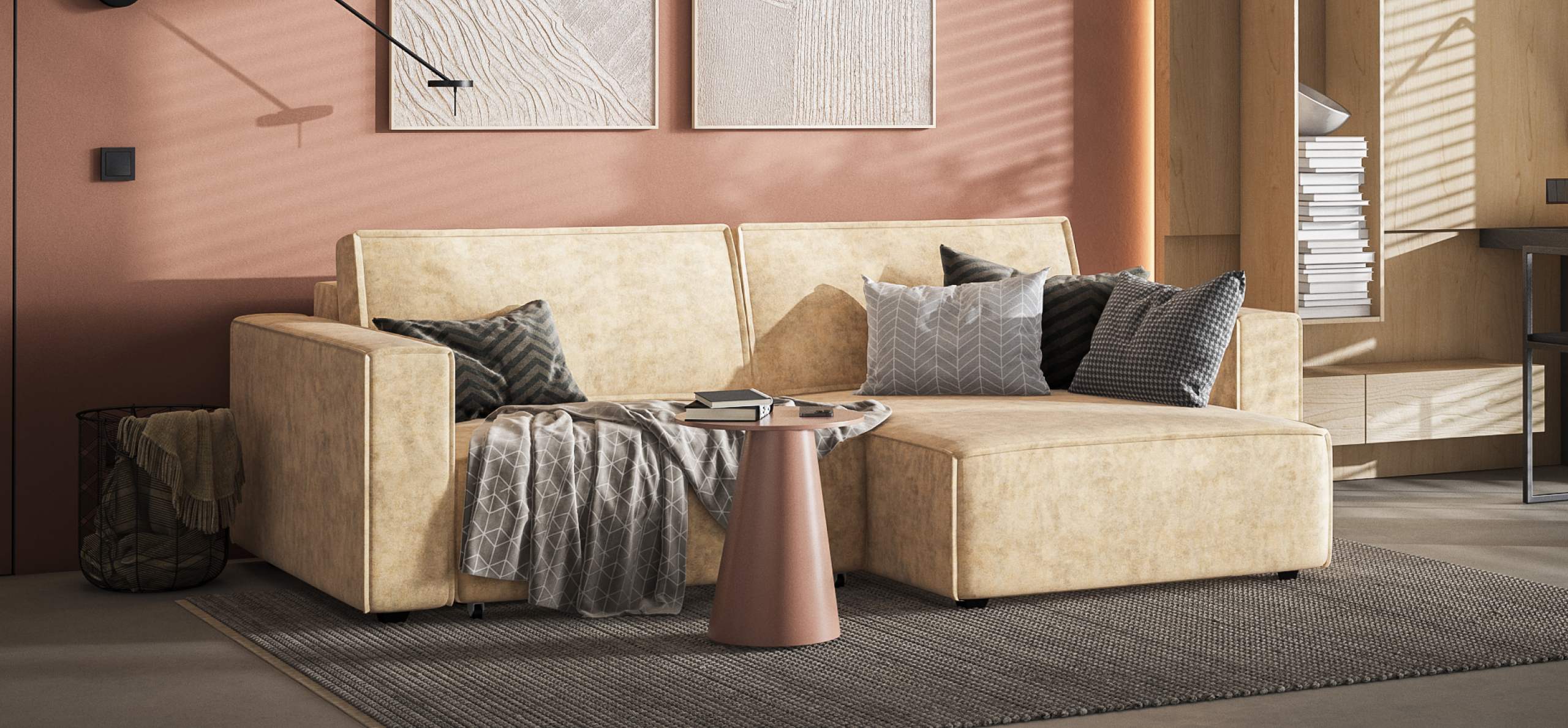 Простой и надежный механизм еврокнижка с легкостью превратит модульную систему в комфортное спальное место.