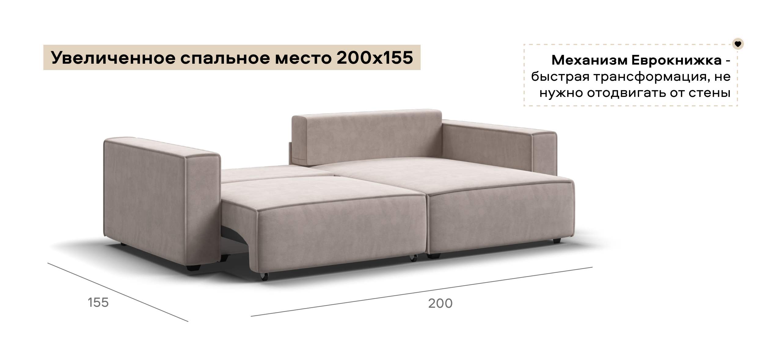 Простой и надежный механизм еврокнижка с легкостью превратит модульную систему в комфортное спальное место.
