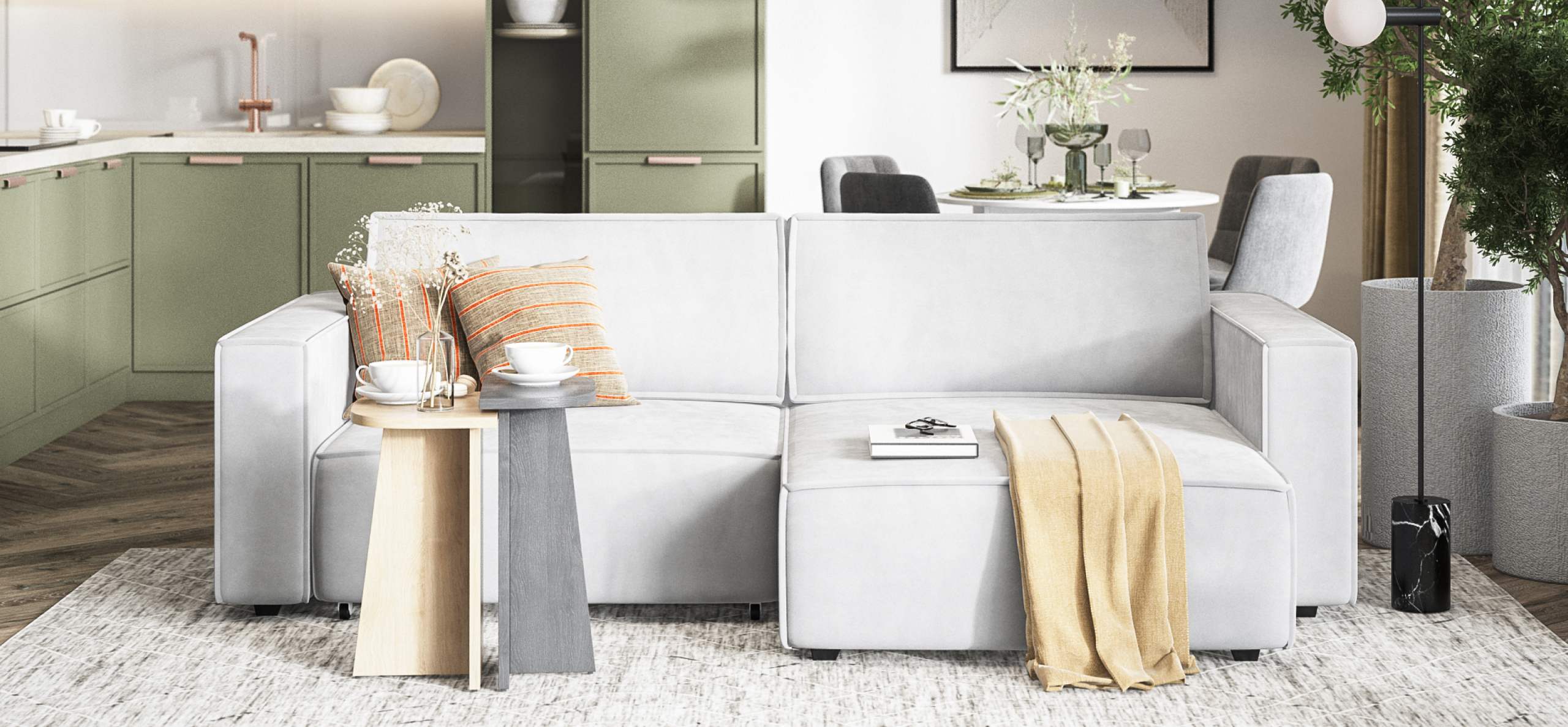 Простой и надежный механизм еврокнижка с легкостью превратит модульную систему в комфортное спальное место.