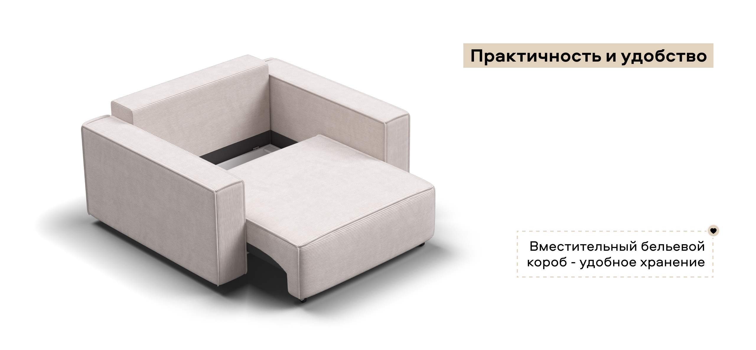 Широкие прямоугольные подлокотники, строгая симметрия и минималистичная отделка идеально дополнит современный интерьер Вашей гостиной.
