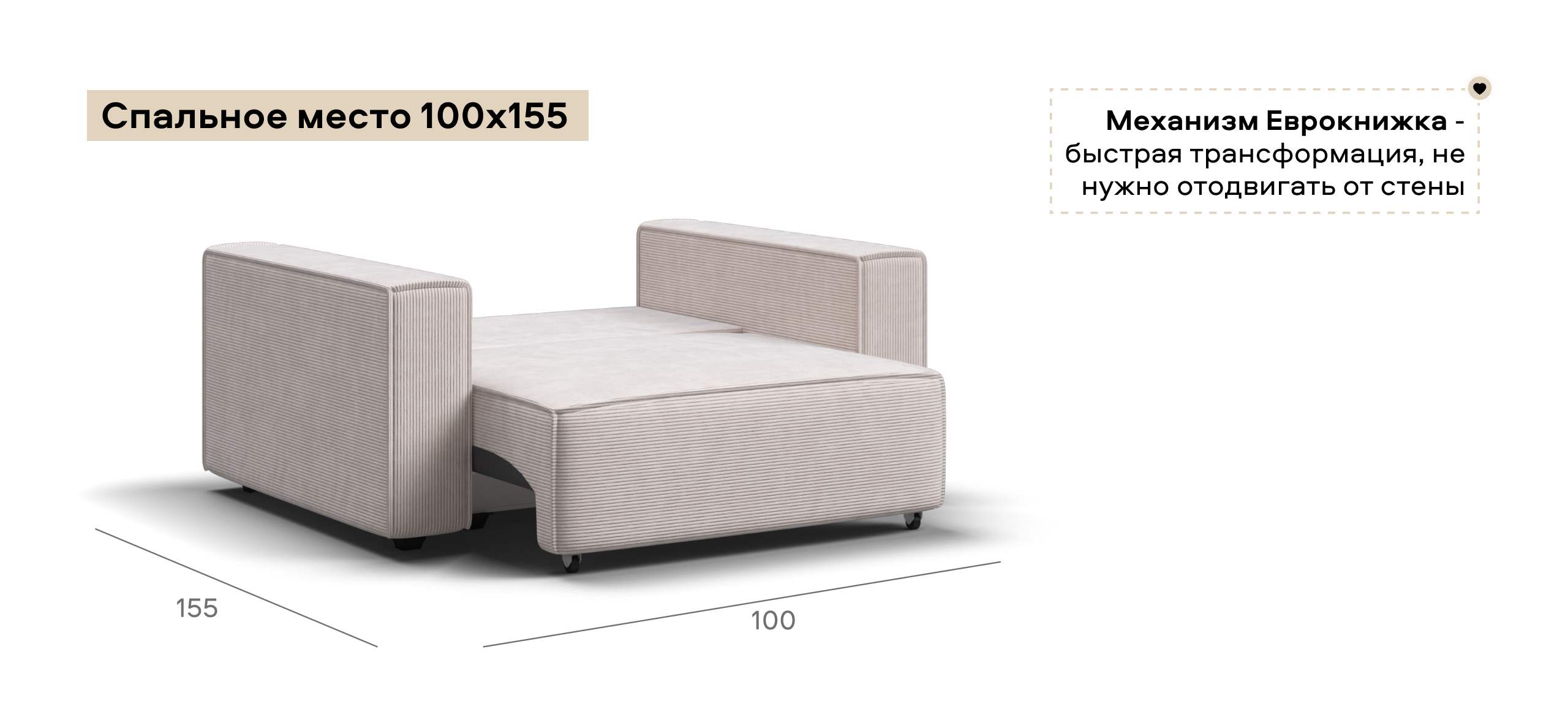 Простой и надежный механизм еврокнижка с легкостью превратит модульную систему в комфортное спальное место.