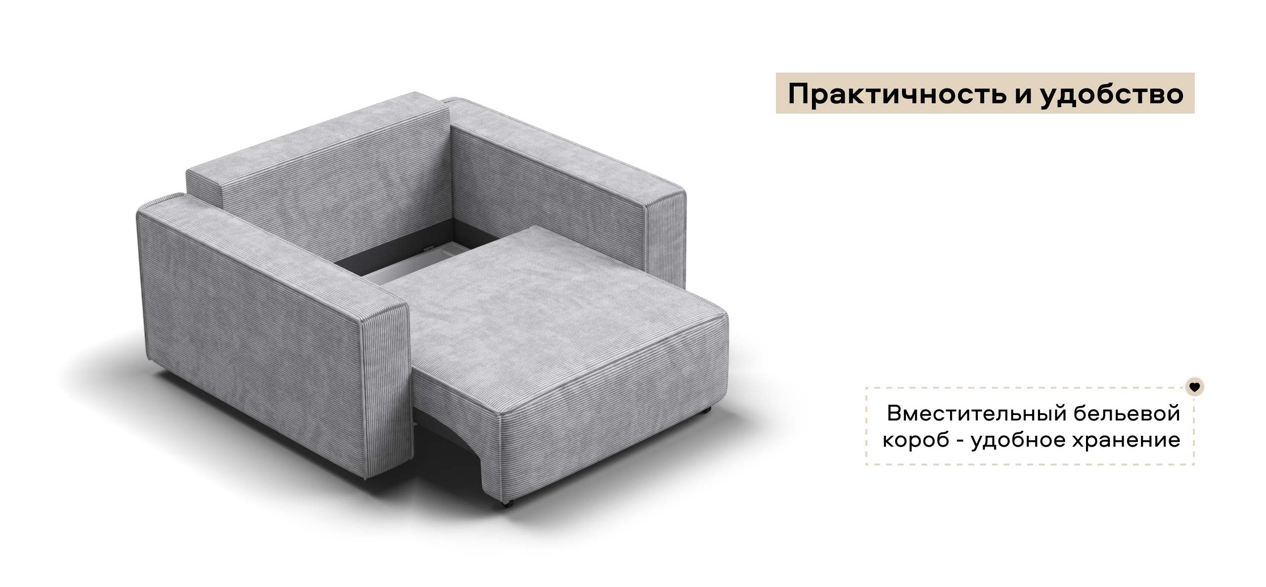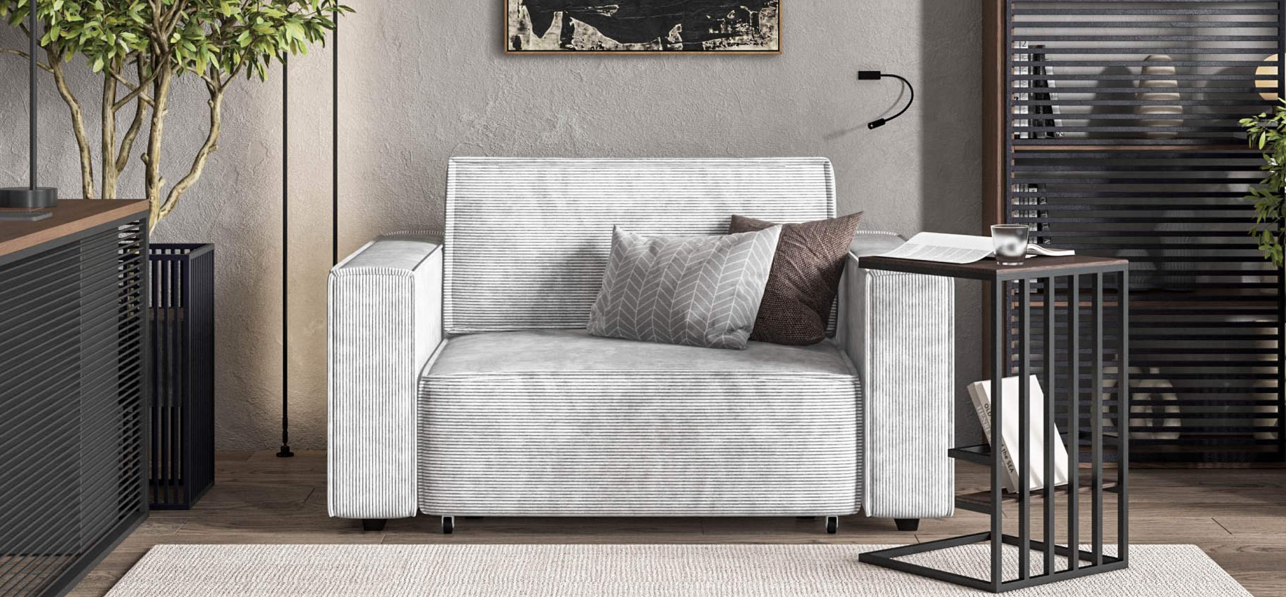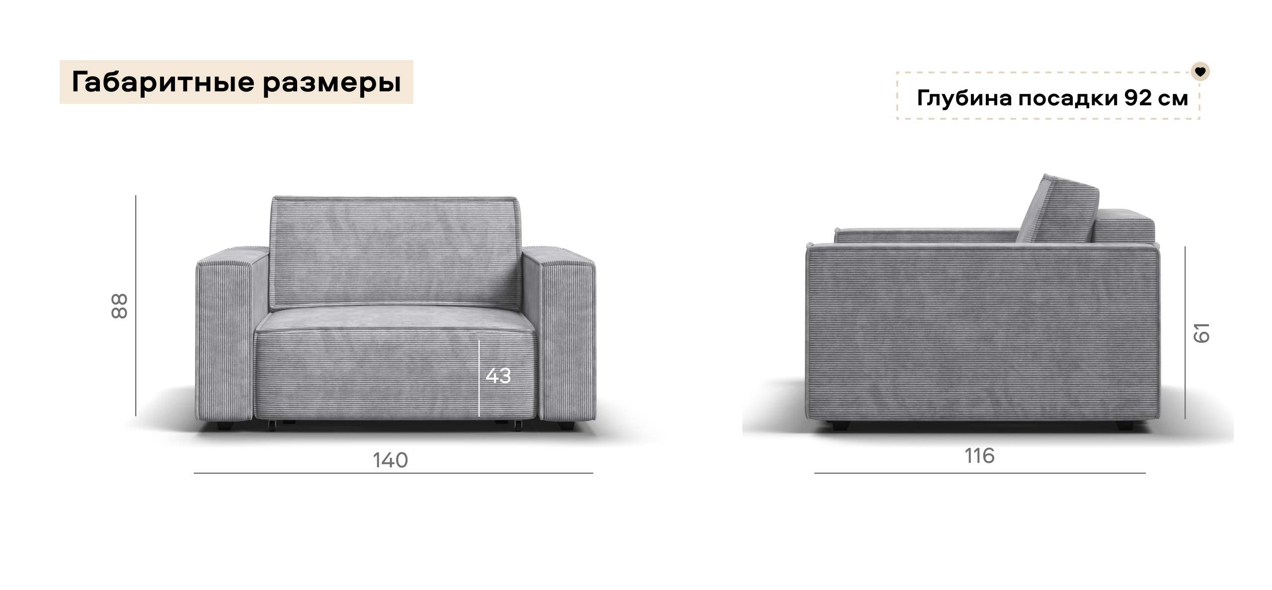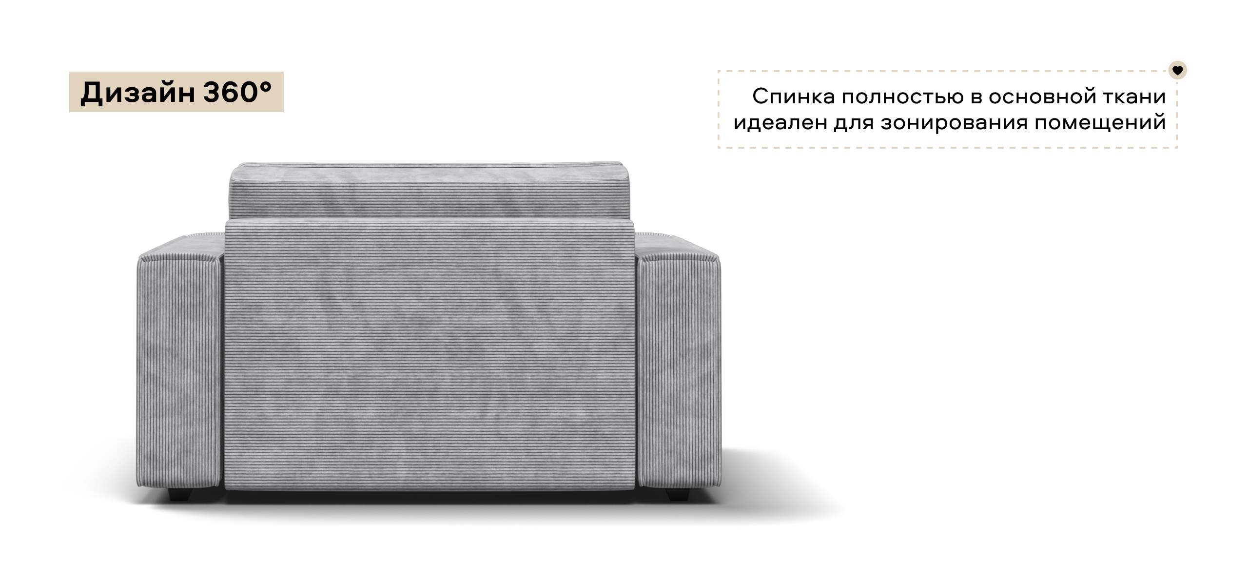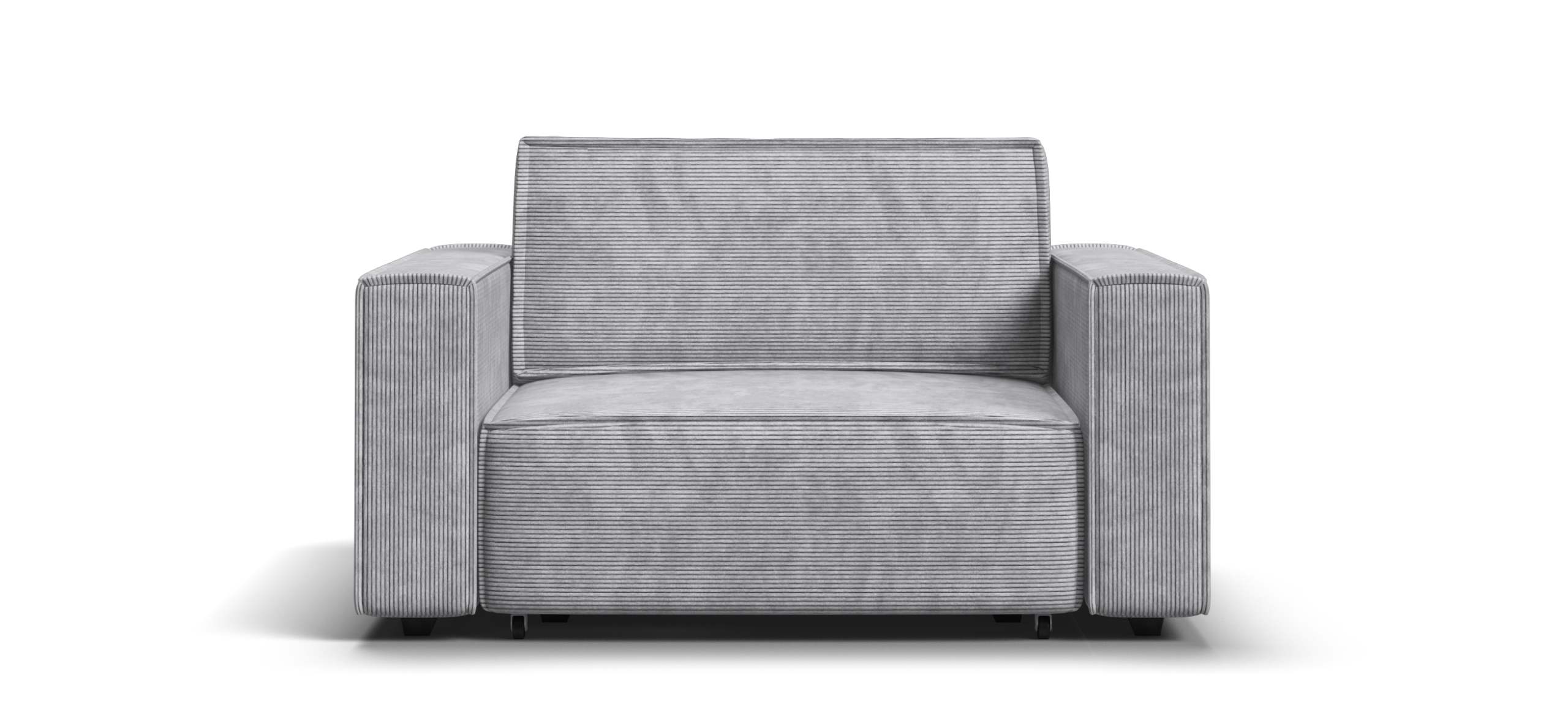 Широкие прямоугольные подлокотники, строгая симметрия и минималистичная отделка идеально дополнит современный интерьер Вашей гостиной.