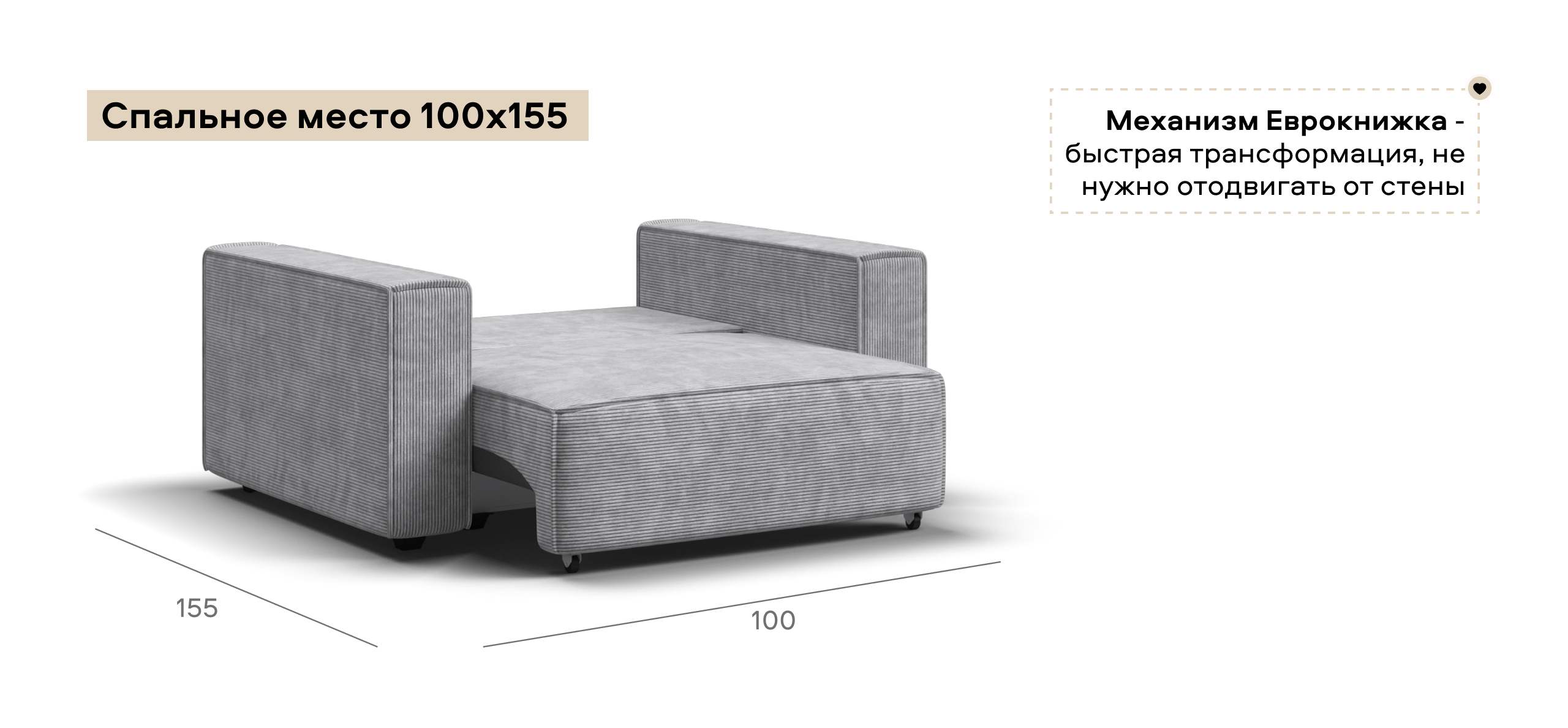 Простой и надежный механизм еврокнижка с легкостью превратит модульную систему в комфортное спальное место.