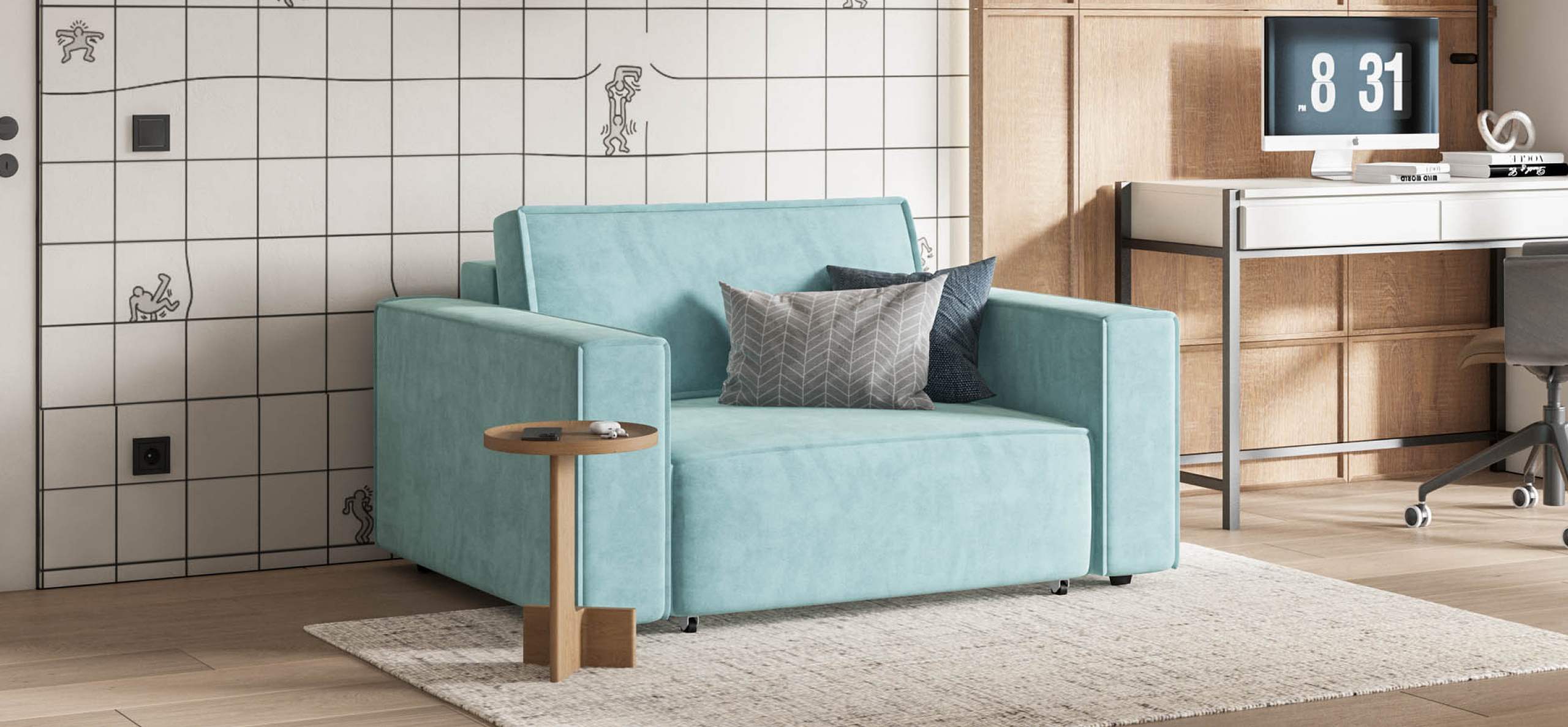 Простой и надежный механизм еврокнижка с легкостью превратит модульную систему в комфортное спальное место.