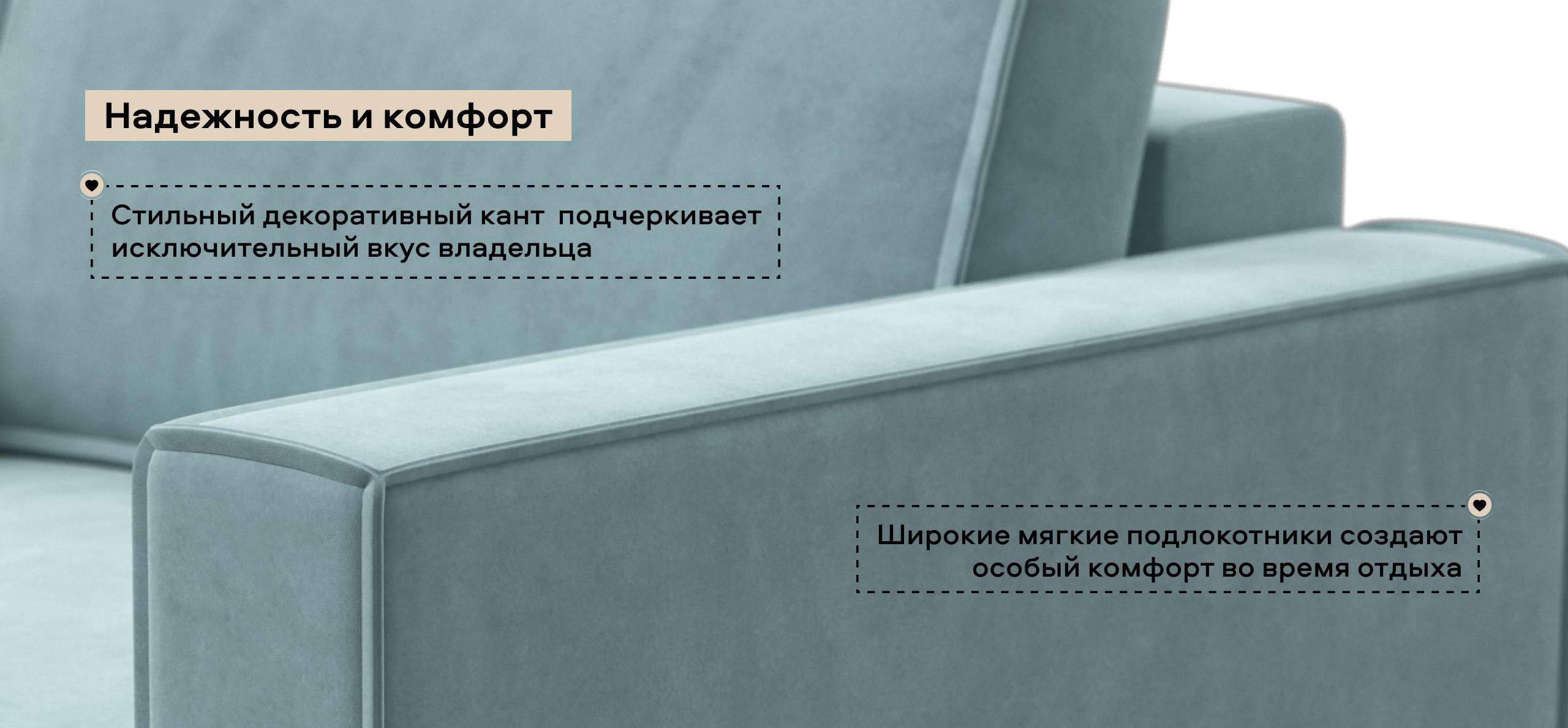 Широкие прямоугольные подлокотники, строгая симметрия и минималистичная отделка идеально дополнит современный интерьер Вашей гостиной.