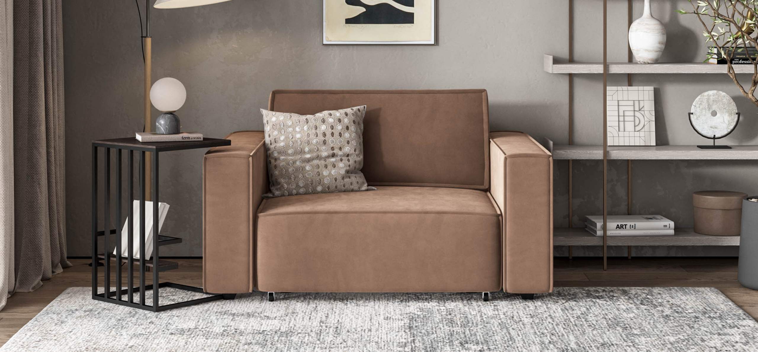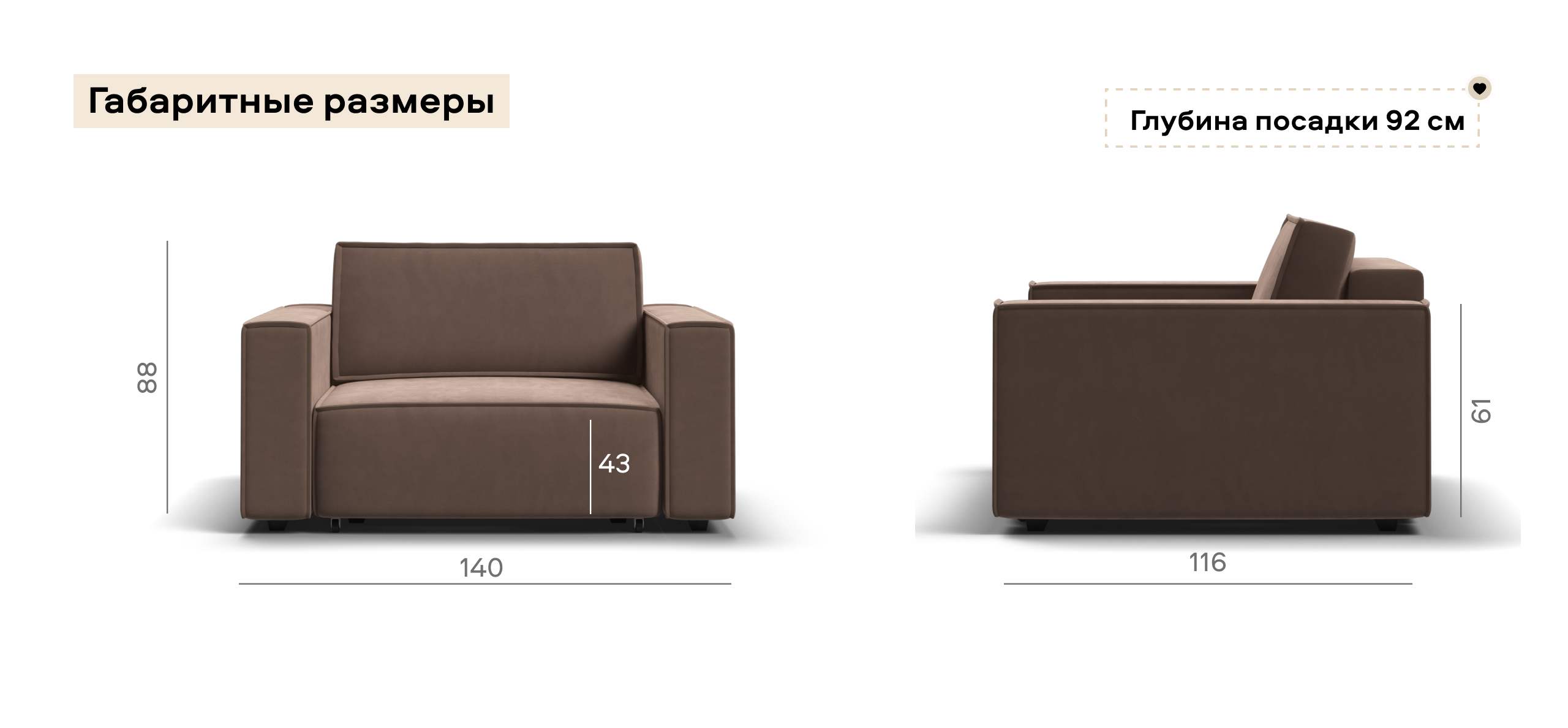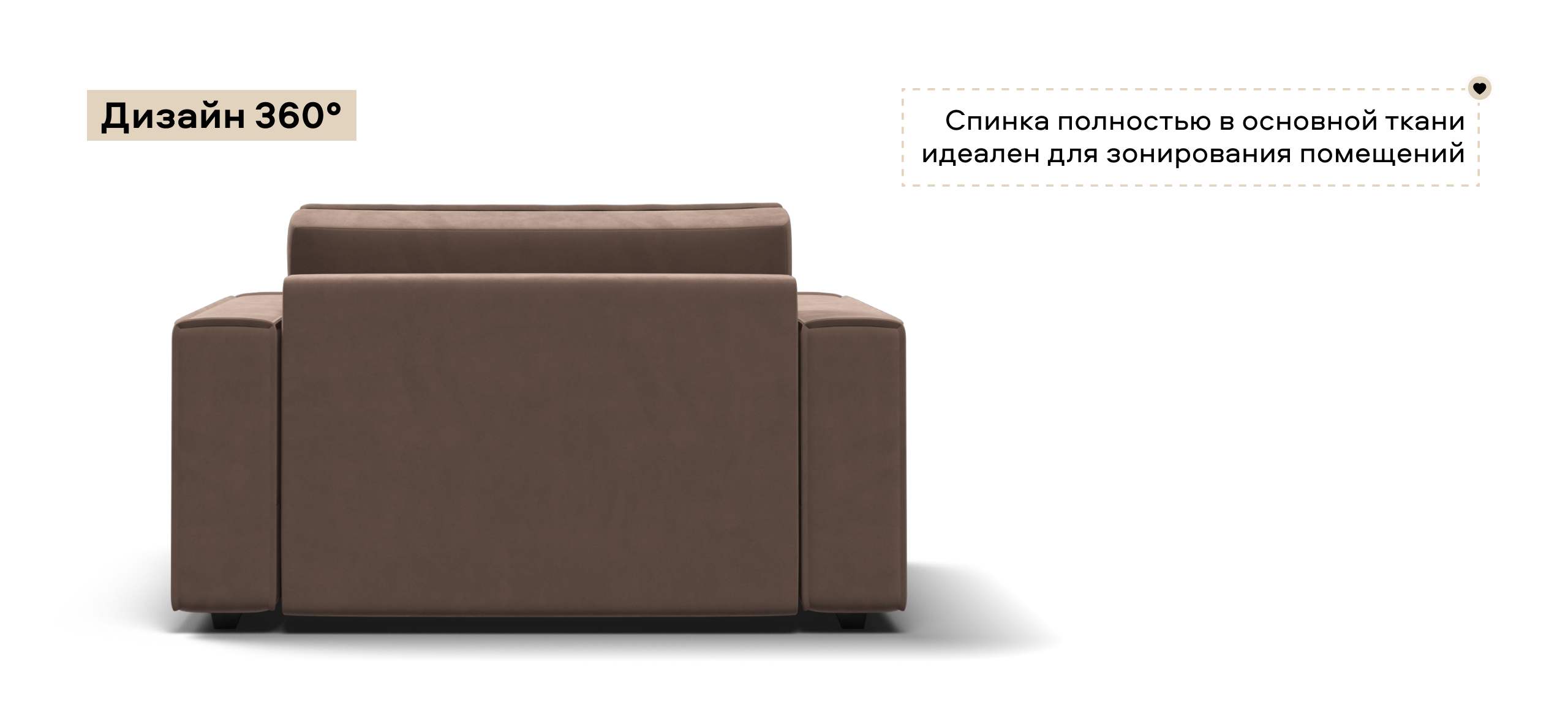 Широкие прямоугольные подлокотники, строгая симметрия и минималистичная отделка идеально дополнит современный интерьер Вашей гостиной.
