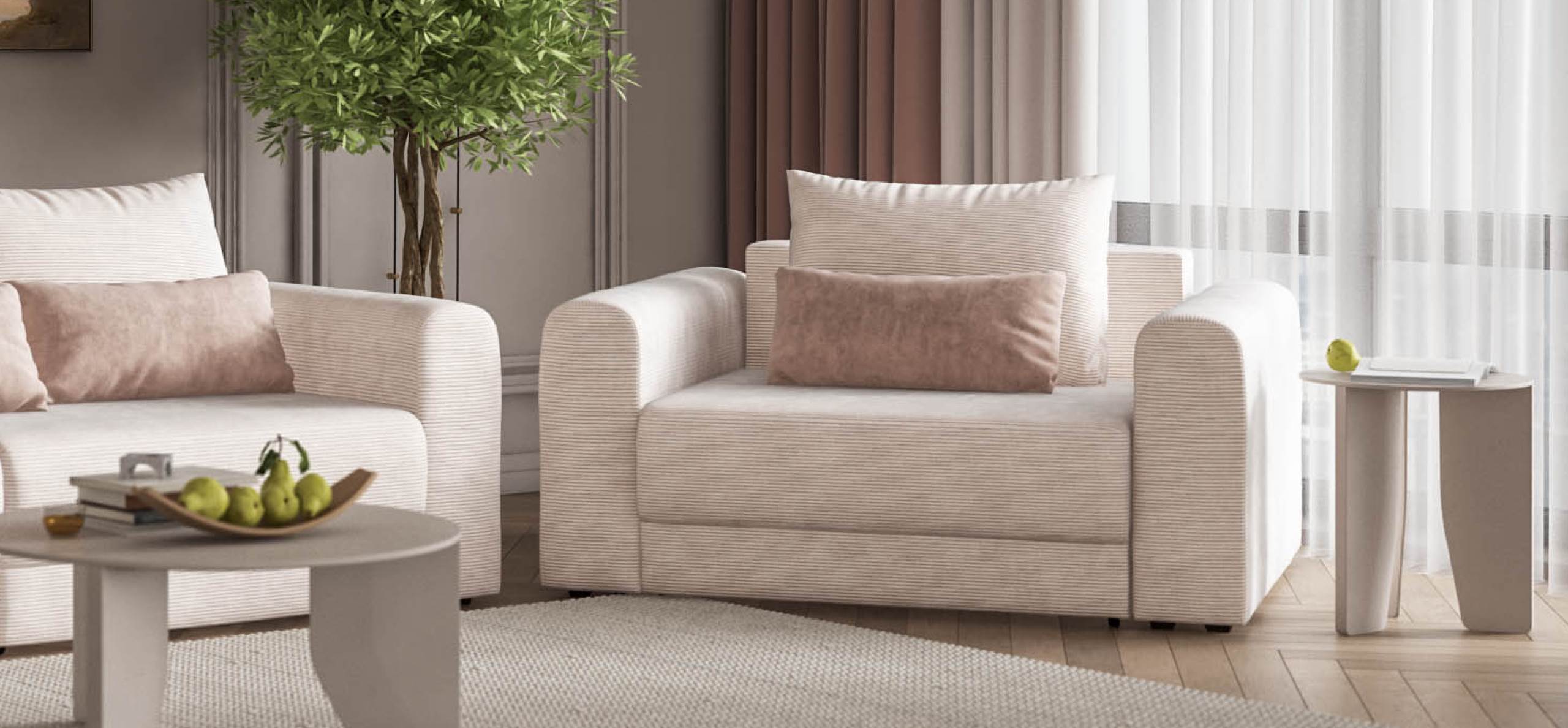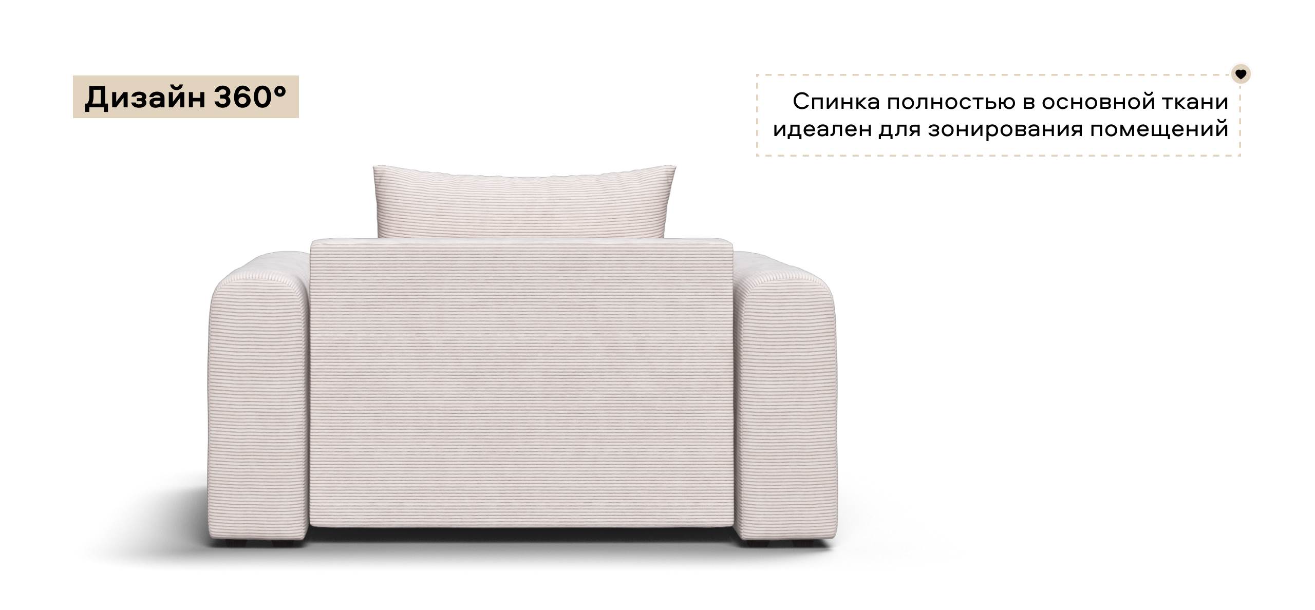 Широкие скругленные подлокотники, плавные линии и приспинные подушки разного размера - стильный комфорт в каждой детали.