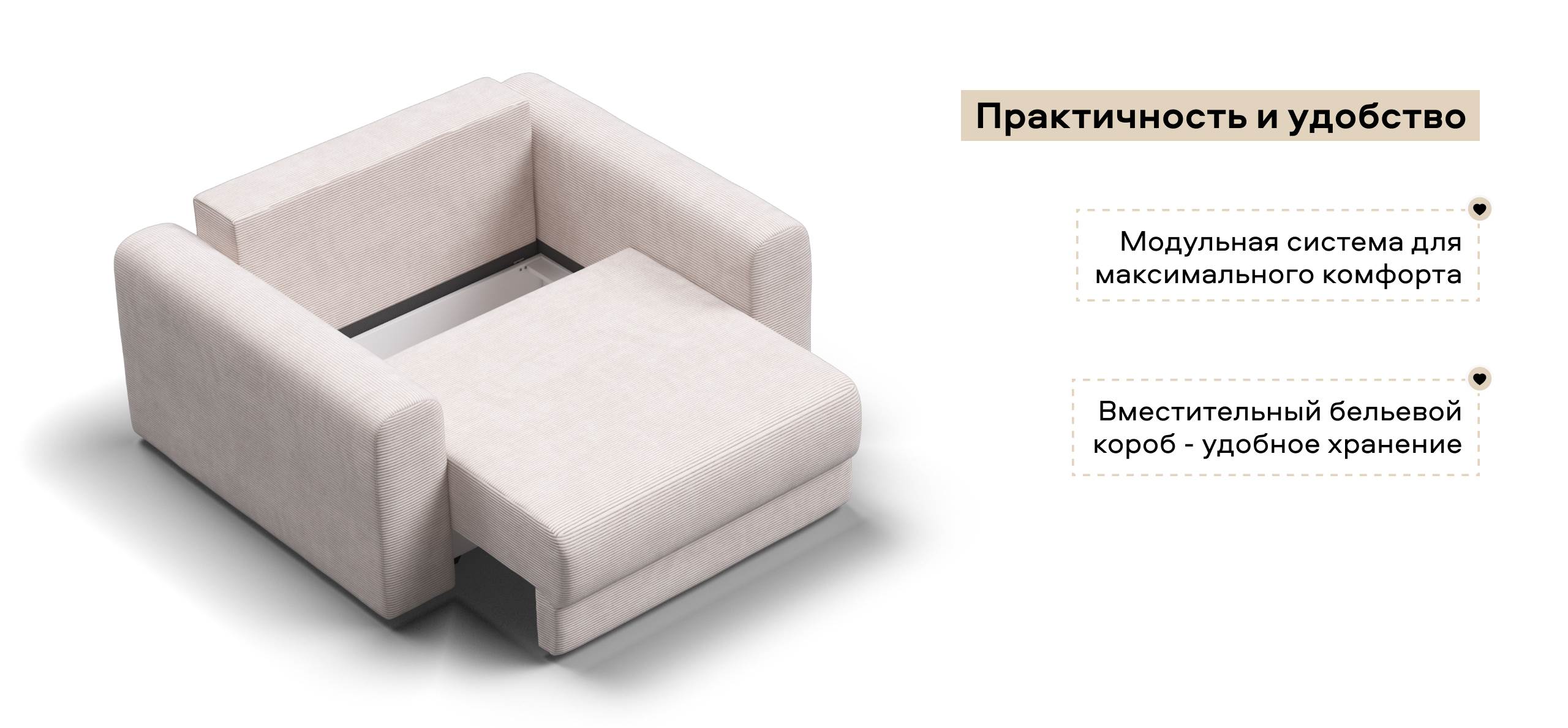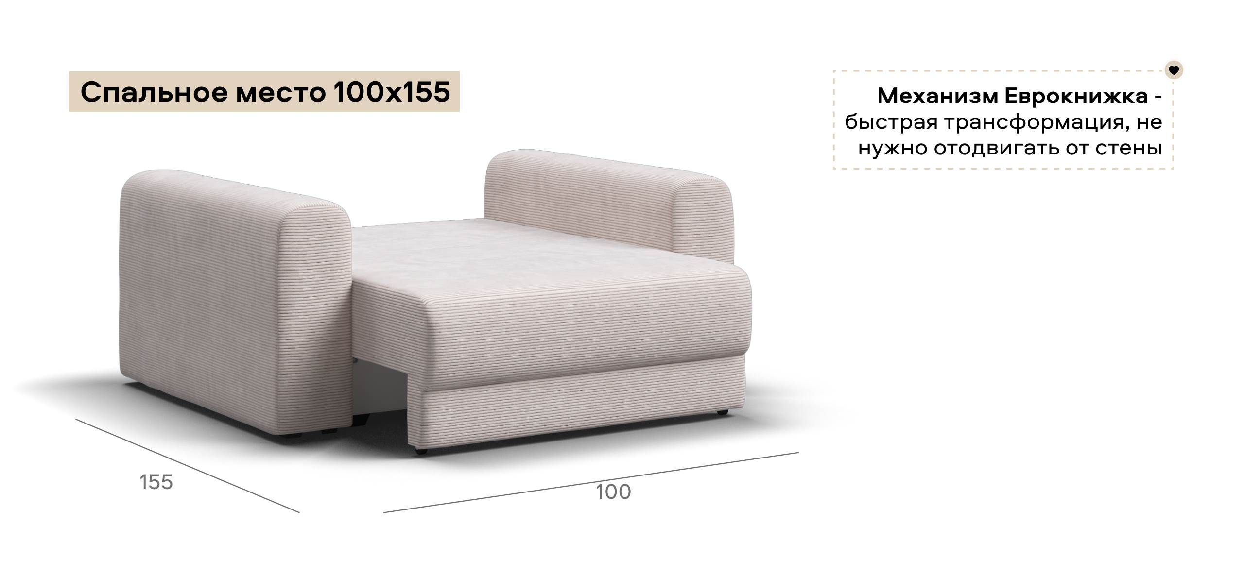 Простой и надежный механизм еврокнижка с легкостью превратит модульную систему в комфортное спальное место.