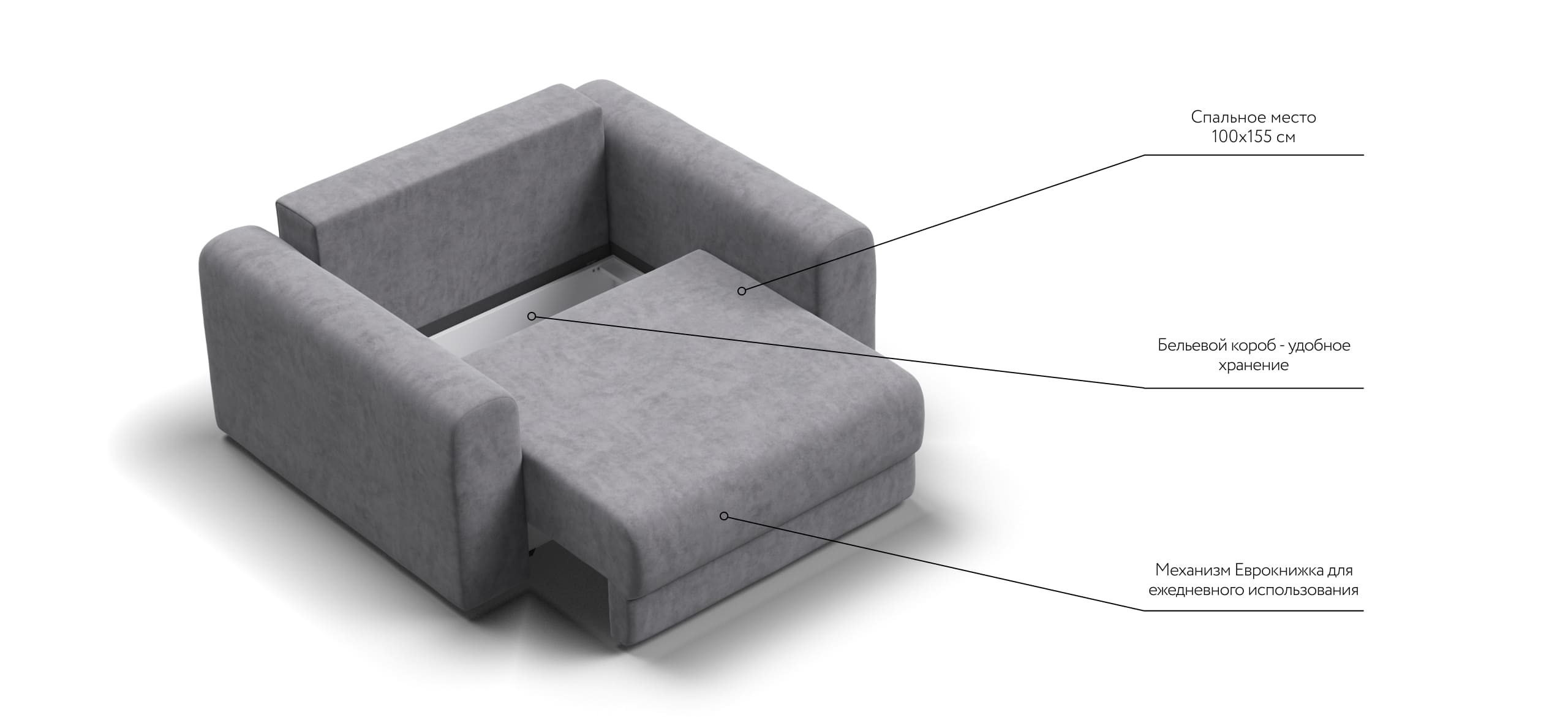Простой и надежный механизм еврокнижка с легкостью превратит модульную систему в комфортное спальное место.