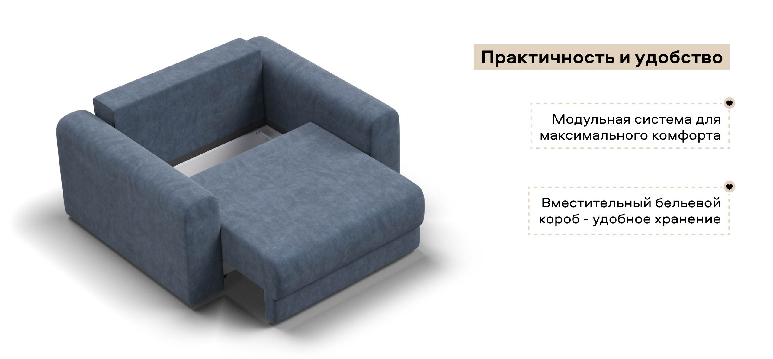 Простой и надежный механизм еврокнижка с легкостью превратит модульную систему в комфортное спальное место.