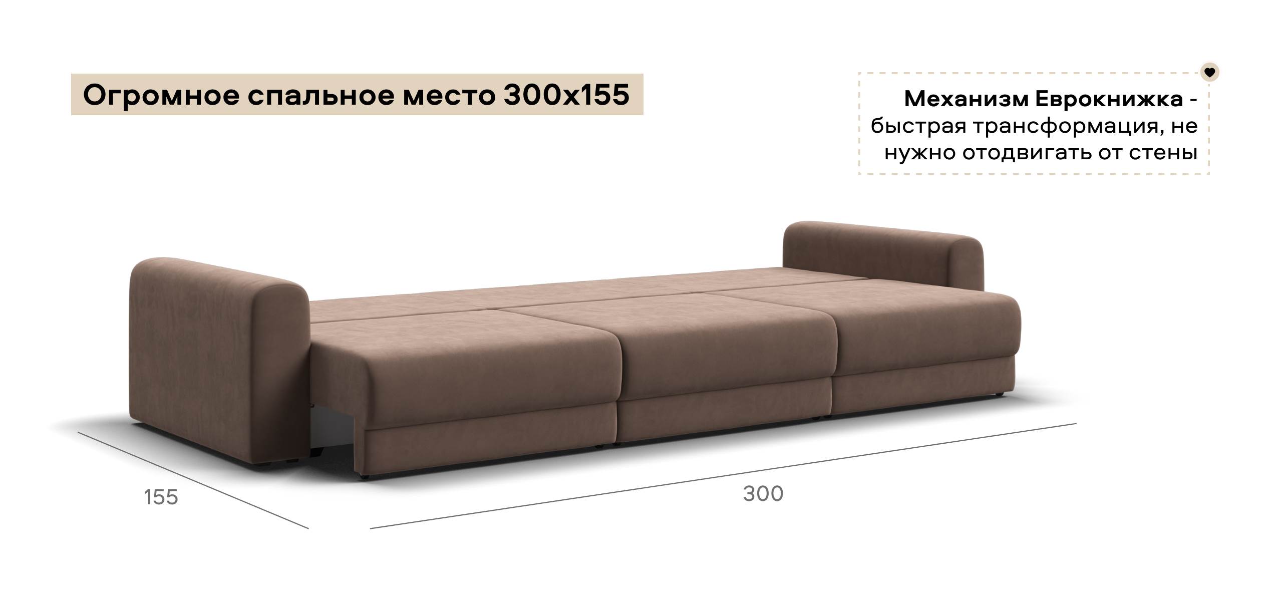 Простой и надежный механизм еврокнижка с легкостью превратит модульную систему в комфортное спальное место.