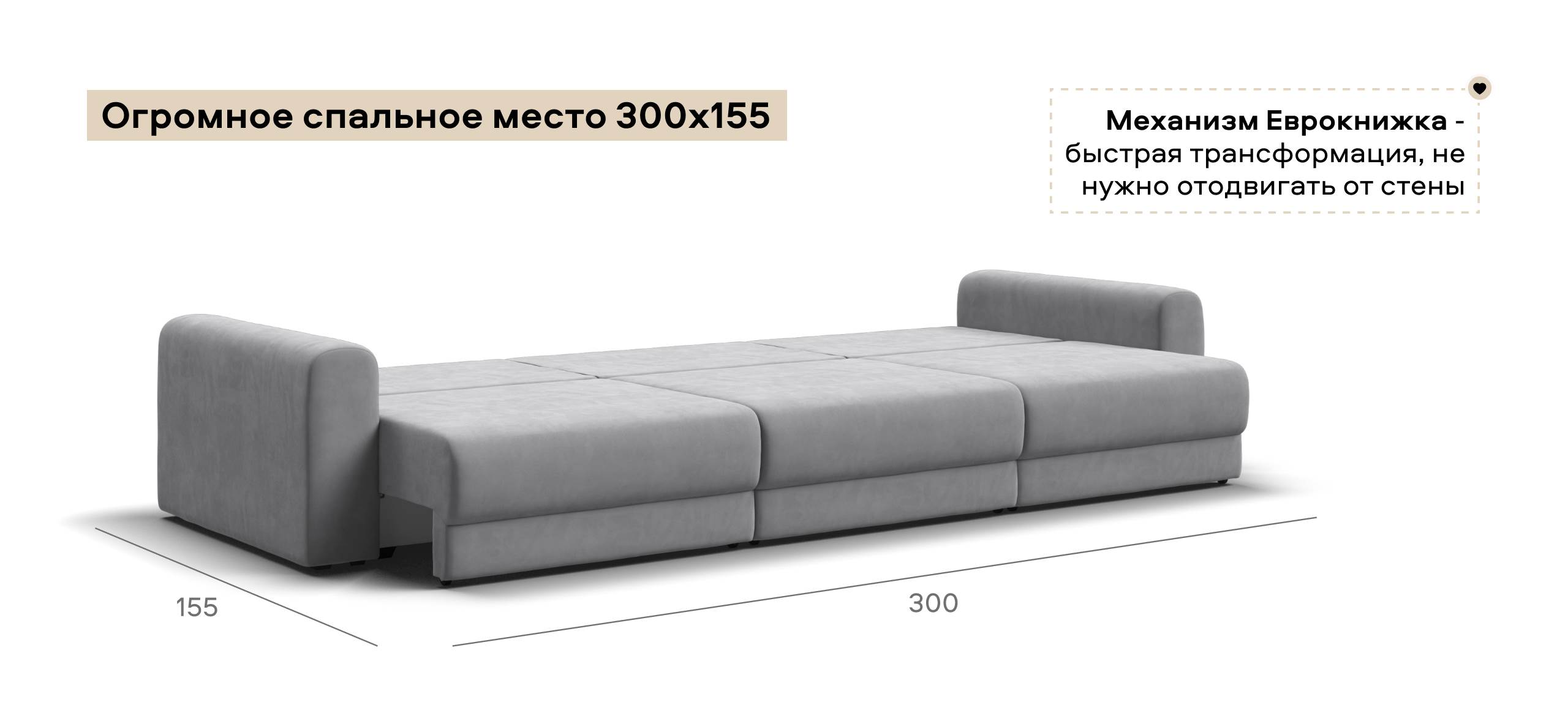 Простой и надежный механизм еврокнижка с легкостью превратит модульную систему в комфортное спальное место.