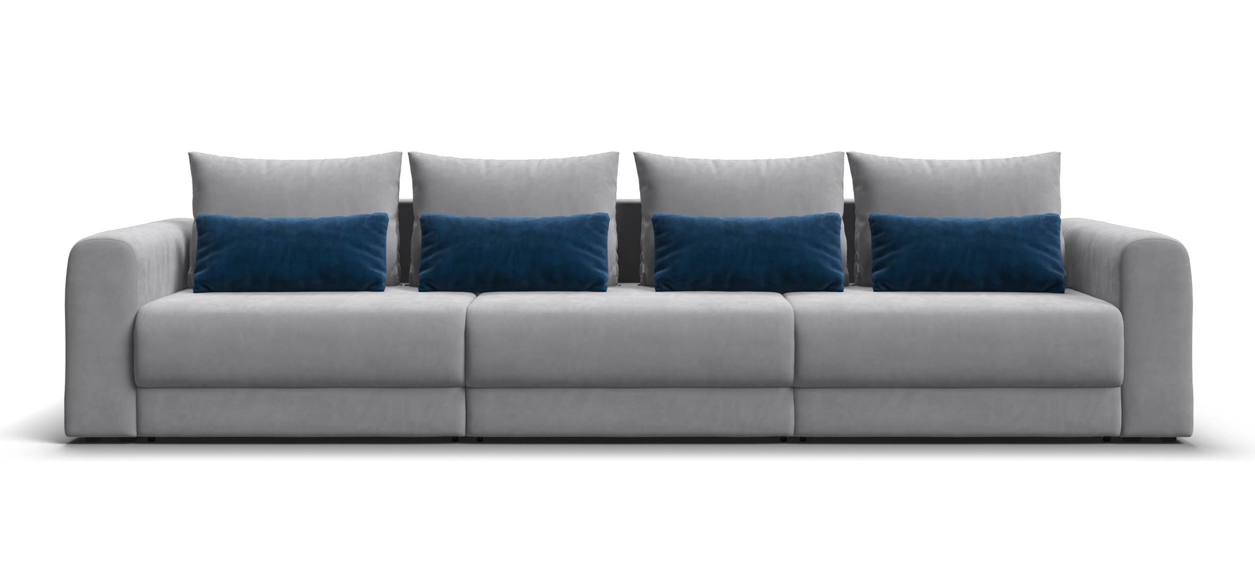 Широкие скругленные подлокотники, плавные линии и приспинные подушки разного размера - стильный комфорт в каждой детали.