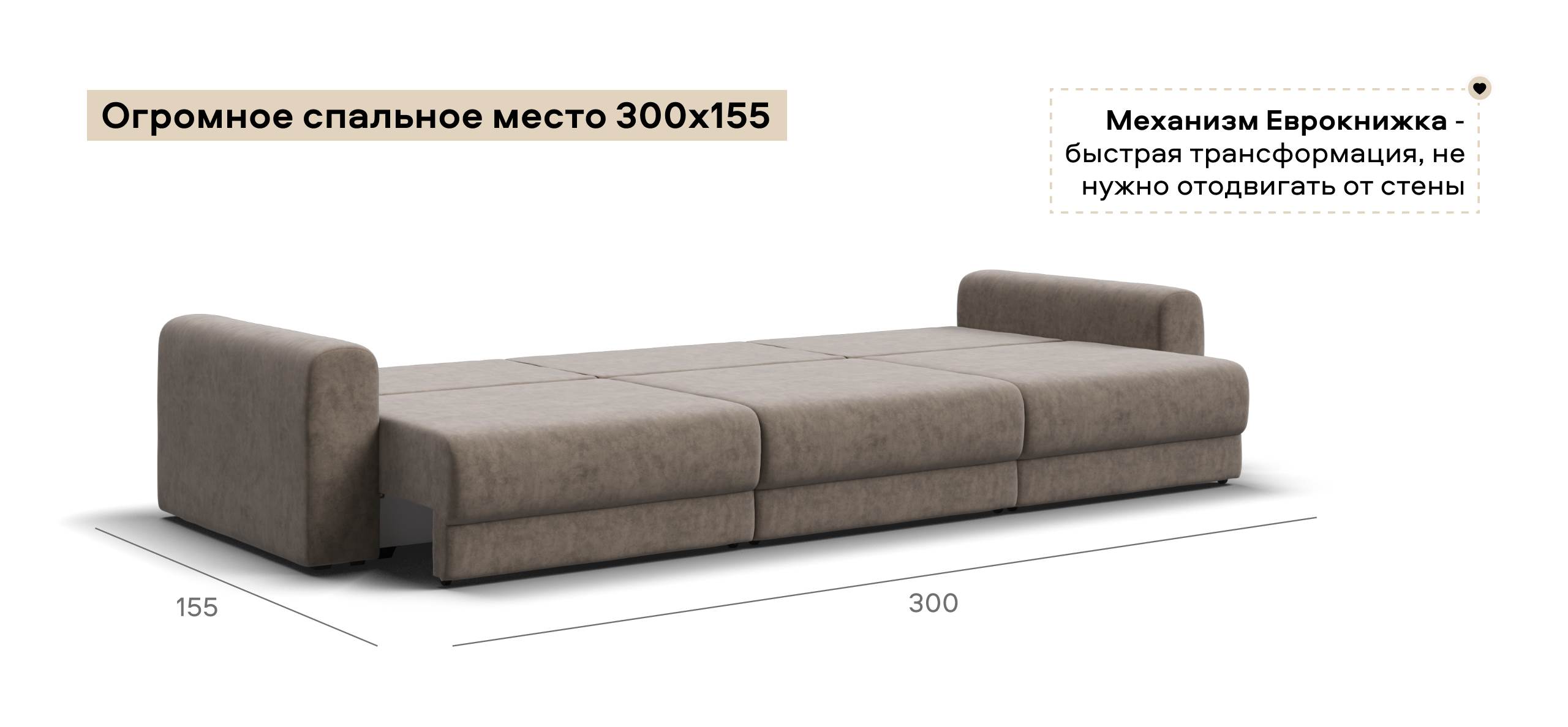 Простой и надежный механизм еврокнижка с легкостью превратит модульную систему в комфортное спальное место.