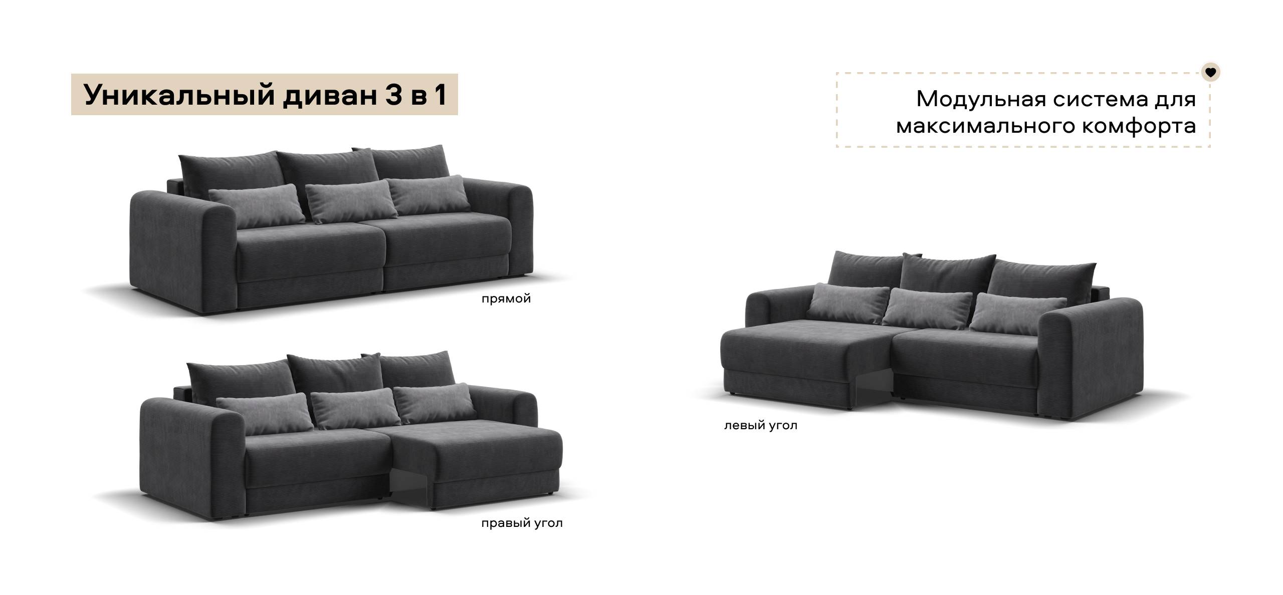 Ричмонд Модуль – Модульная система для комфортного отдыха. Суперудобная глубокая посадка и высокоэластичная пена с дополнительным слоем Периотек создадут максимальный комфорт во время отдыха.