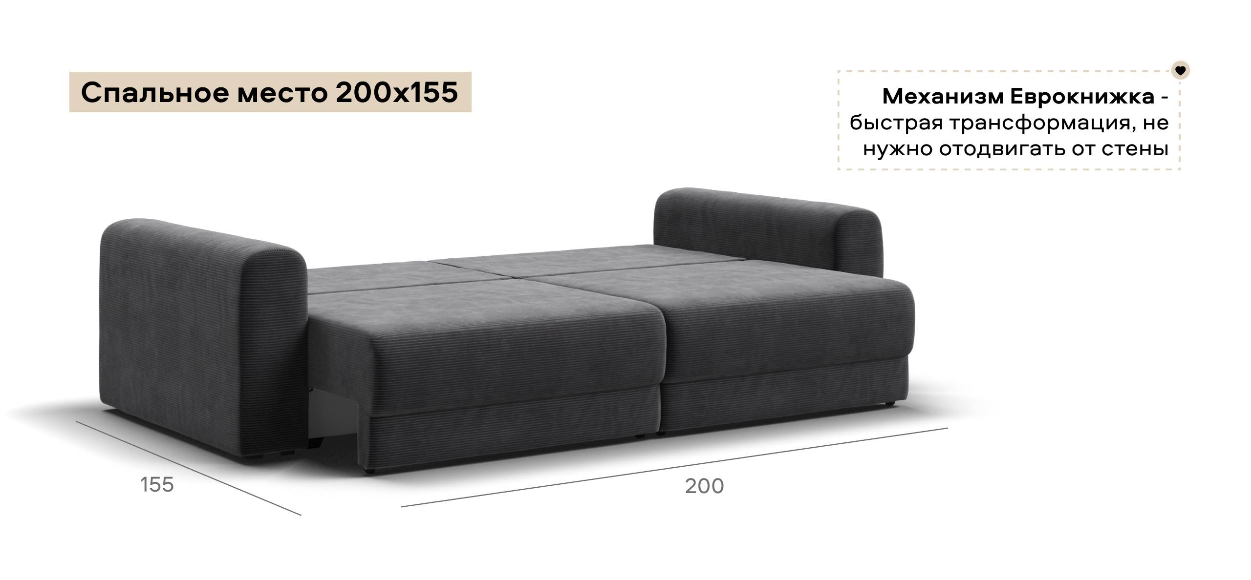 Простой и надежный механизм еврокнижка с легкостью превратит модульную систему в комфортное спальное место.