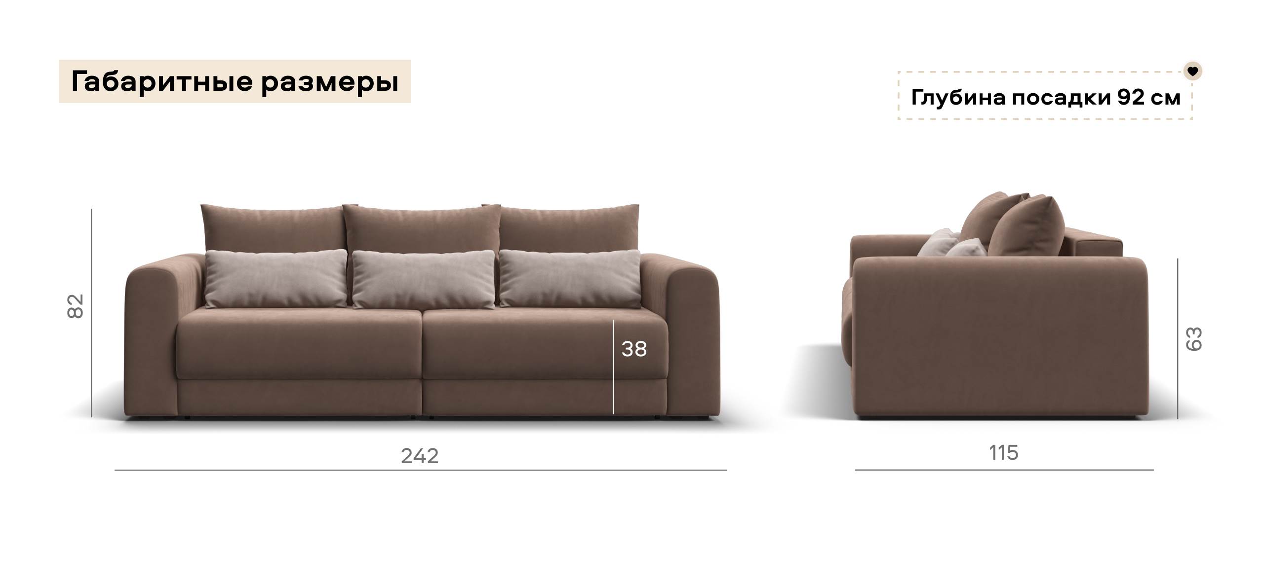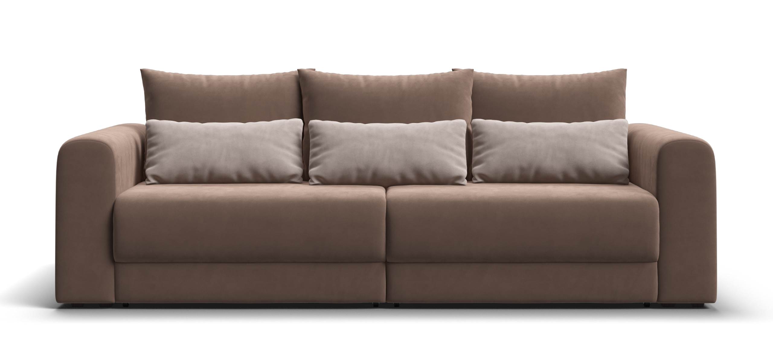 Широкие скругленные подлокотники, плавные линии и приспинные подушки разного размера - стильный комфорт в каждой детали.