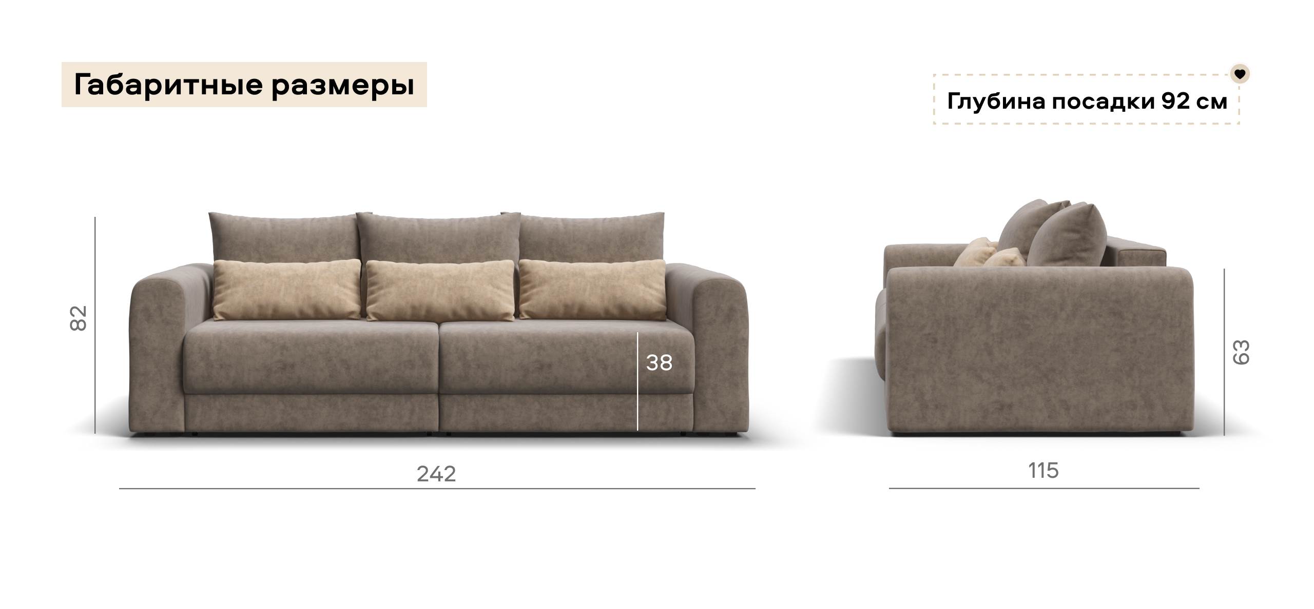 Широкие скругленные подлокотники, плавные линии и приспинные подушки разного размера - стильный комфорт в каждой детали.