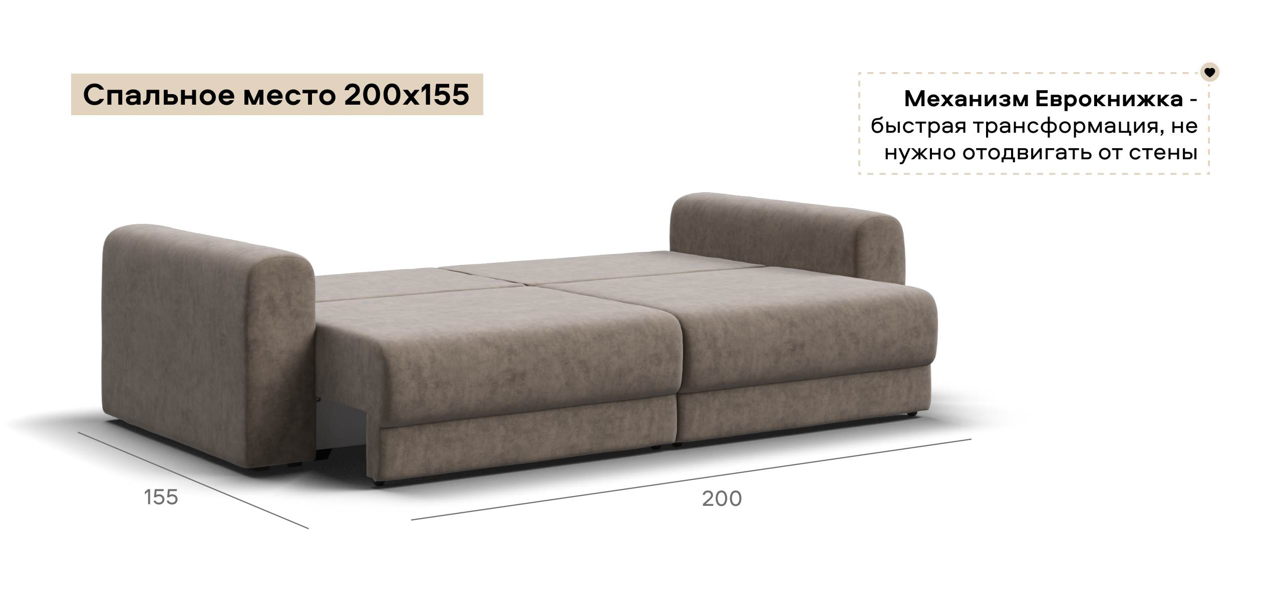 Простой и надежный механизм еврокнижка с легкостью превратит модульную систему в комфортное спальное место.