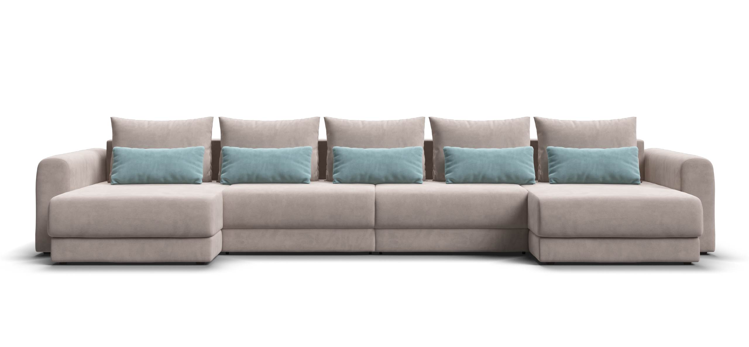 Широкие скругленные подлокотники, плавные линии и приспинные подушки разного размера - стильный комфорт в каждой детали.