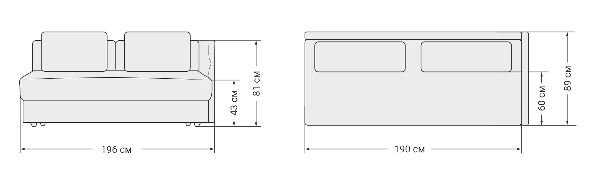 Вместительный бельевой короб в основании позволит Вам убрать на ночь приспинные подушки, а днем хранить постельные принадлежности.