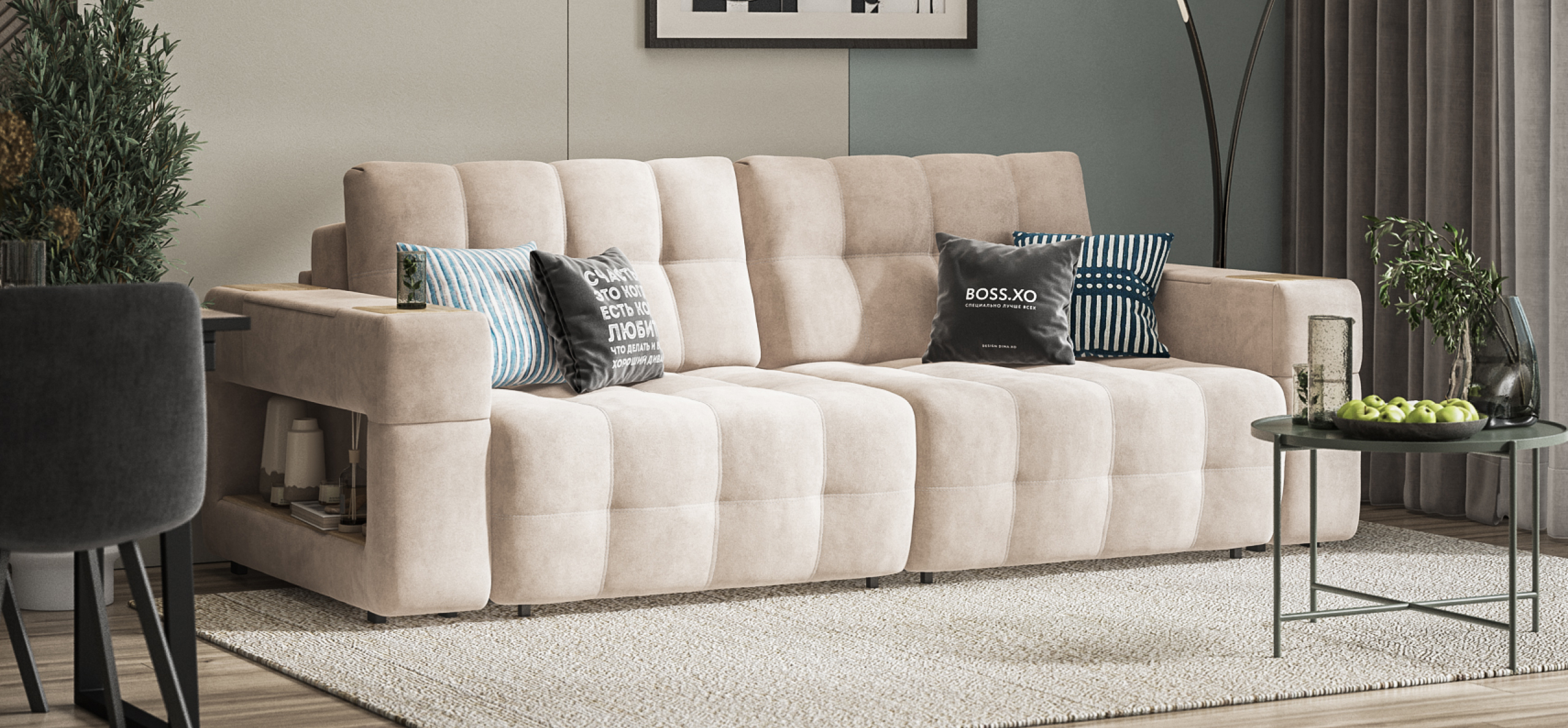 Диван Босс ХО велюр Монолит латте / Снежная Сонома
