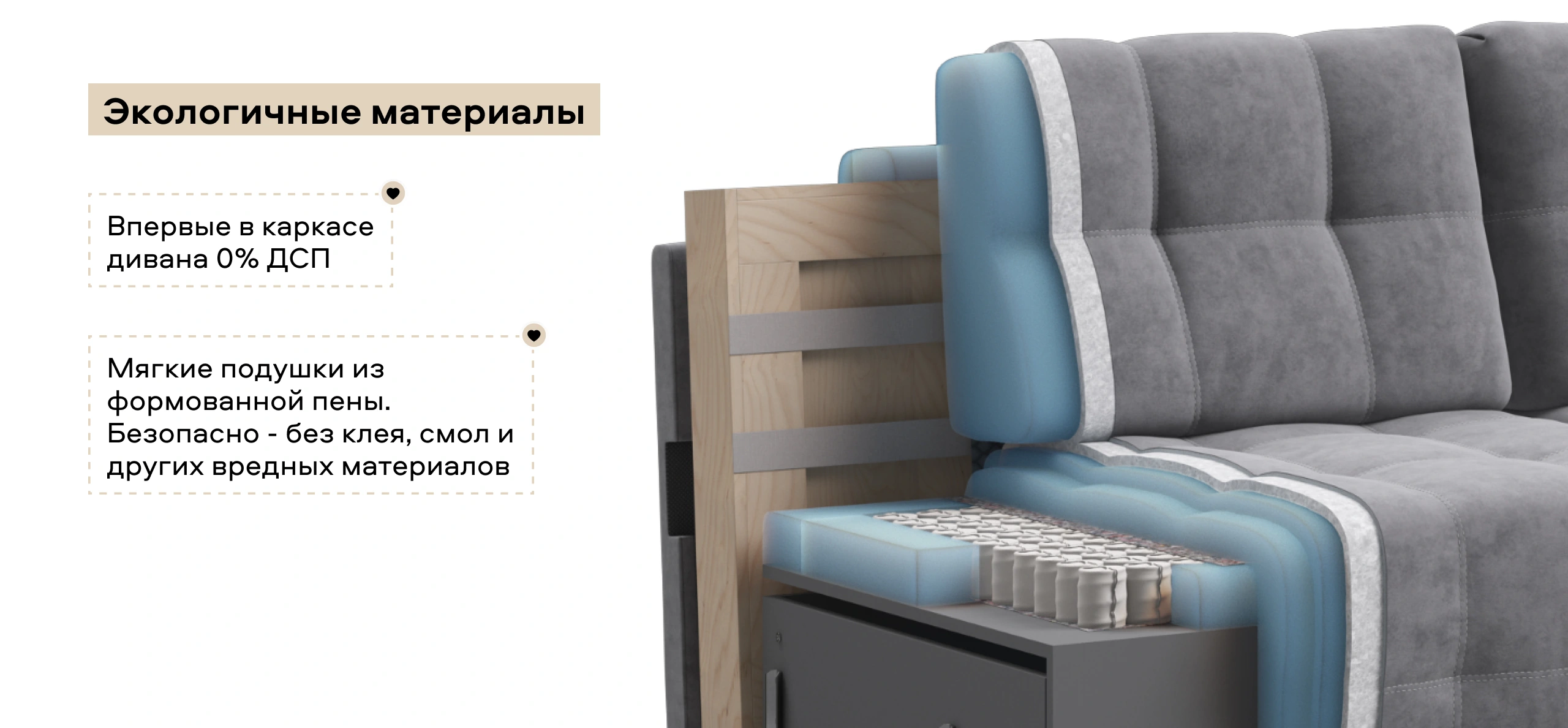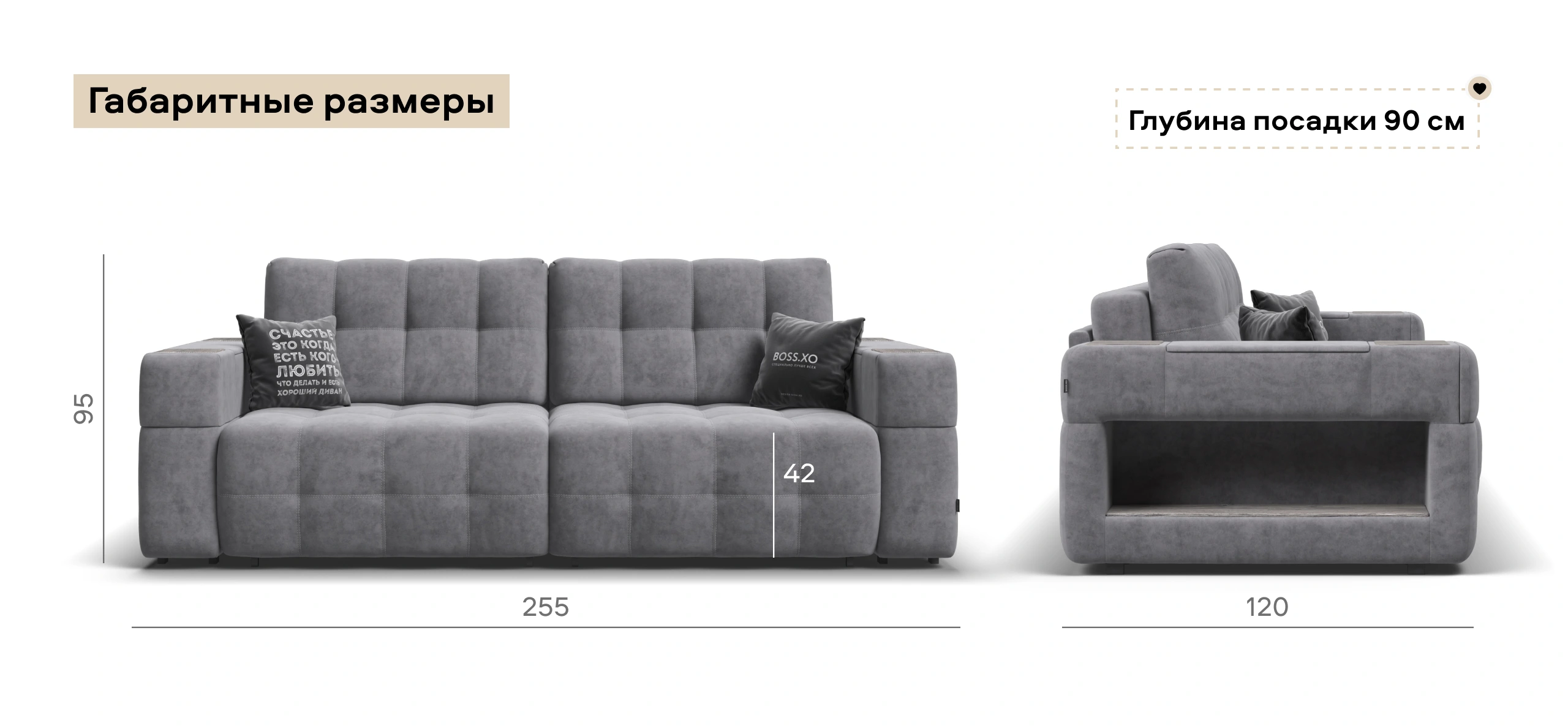 Покупая диван BOSS.XO вы становитесь обладателем уникальных подарков: быстрая зарядка для смартфона, 2 стильных кружки, 2 удобных столика для ноутбука, 2 подушки, комплект запасных накладок на подлокотники, Фул экоручки и средство для чистки Босс Клин.Преимущества материала