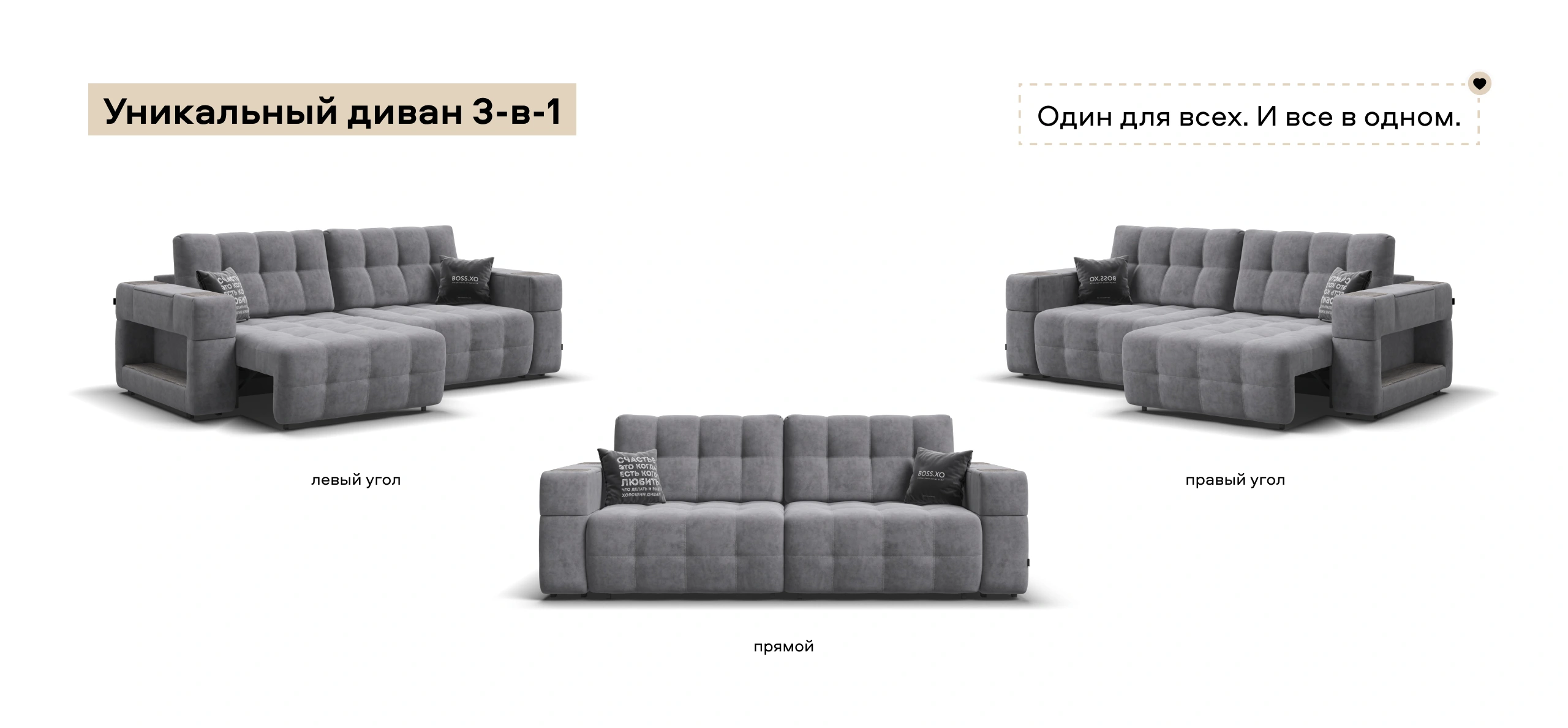 Босс ХО - это и прямой и угловой диван сразу, за 10 секунд вы можете превратить его в правый или левый угол.
